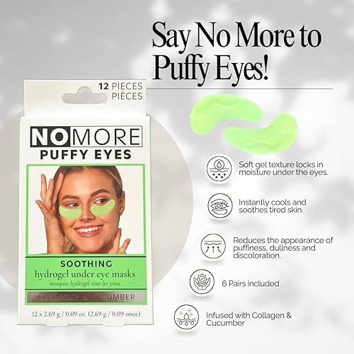 Danielle Creations Anti-Puffiness Puffy Under Eyes No More Hydrogel Undereye Masks for Dark Circles with Collagen & Cucumber, 6 Pairs