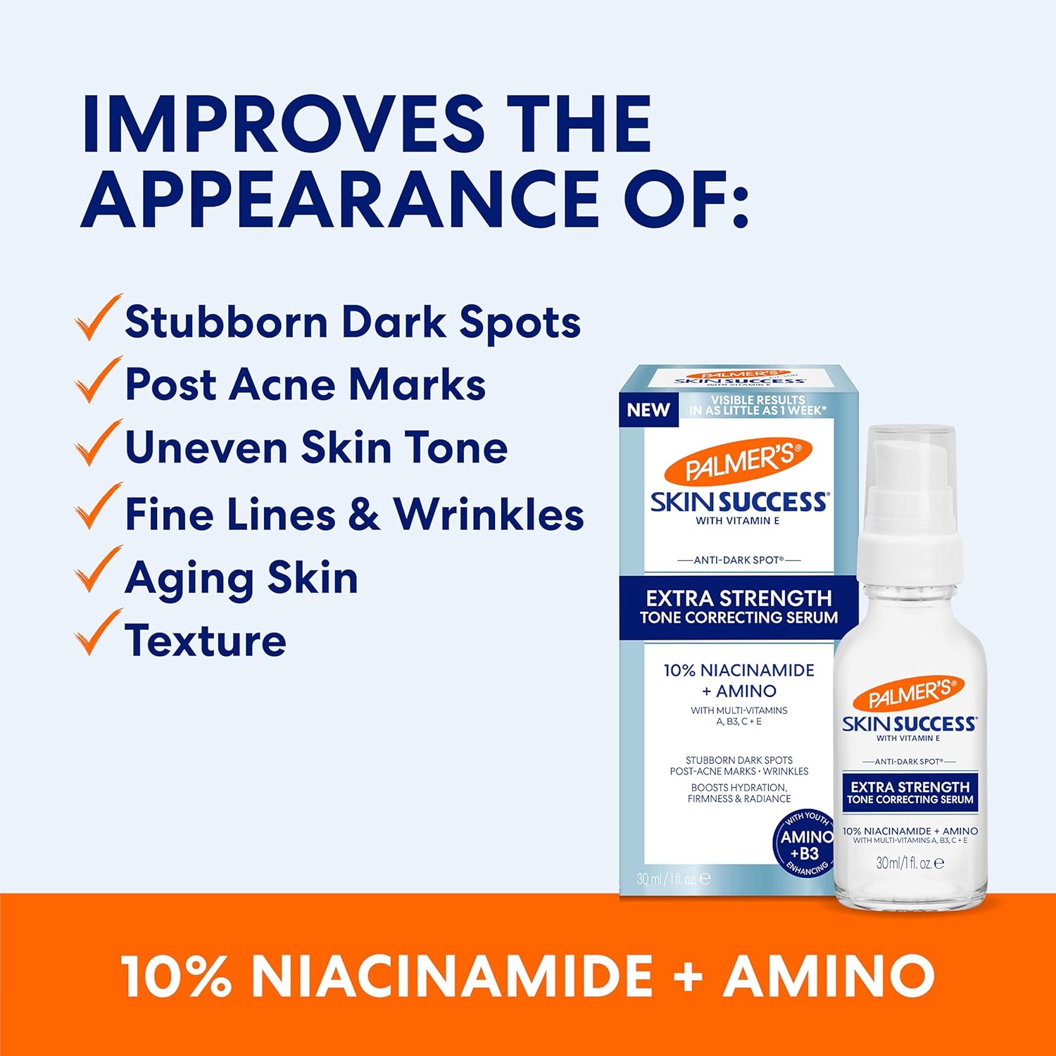 Palmer's Skin Success Extra Strength Tone Correcting Face Serum, 1.0 Fl Oz, Dark Spot Corrector for Discoloration, Age Spots and Post-Acne Marks