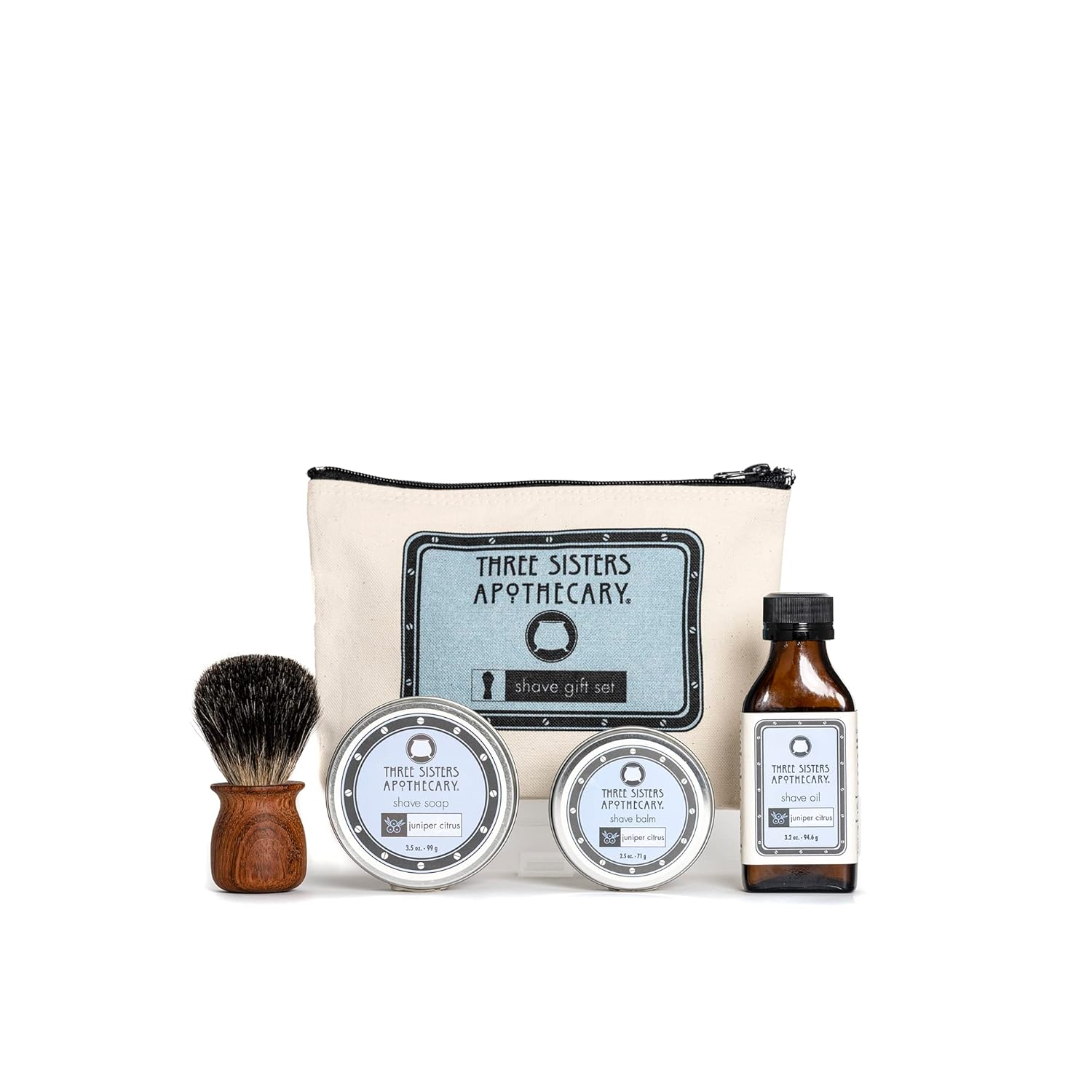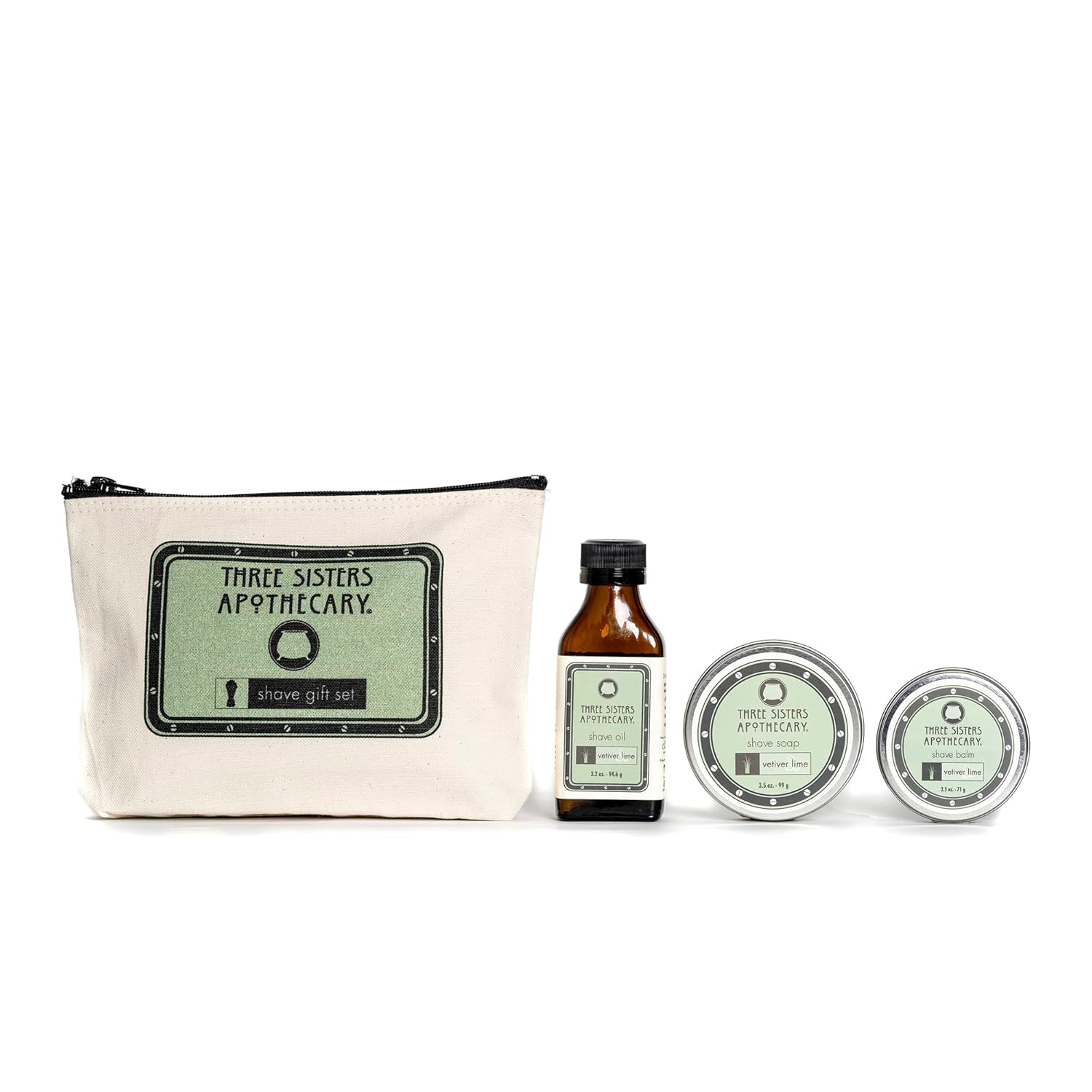 Three Sisters Apothecary Shave Essentials Travel 3 Piece Gift Set (Vetiver and Lime)