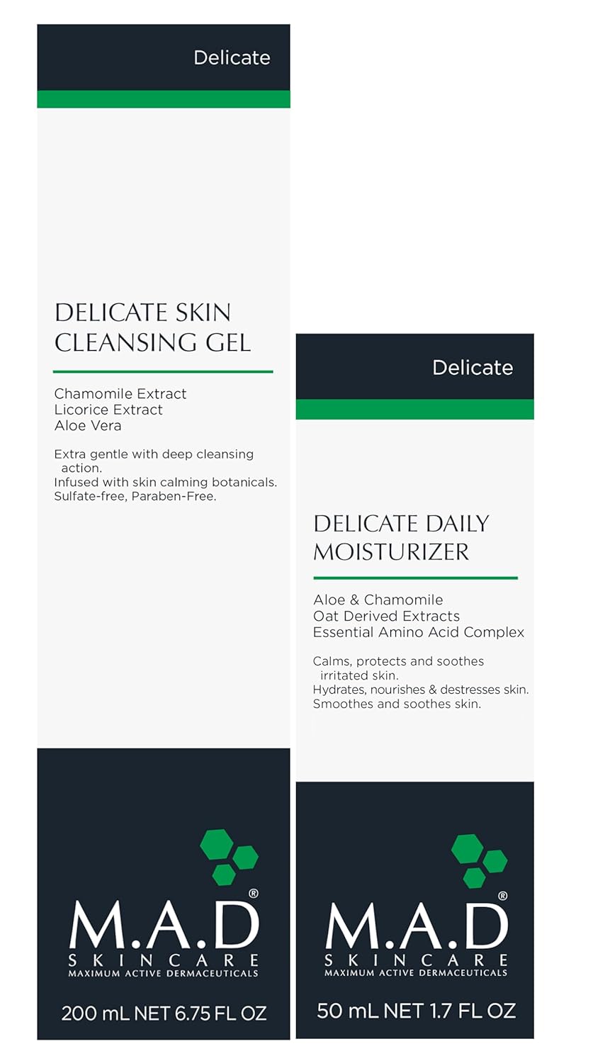M.A.D Skincare Delicate Skin Duo: Gentle Cleanser & Soothing Moisturizer with Chamomile, Aloe & Licorice for Sensitive, Irritated & Dry Skin. Amino Acid Rich.