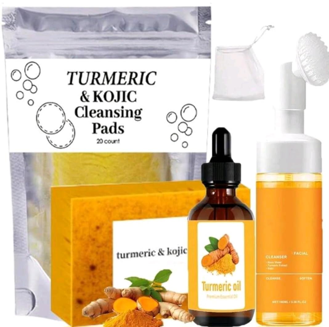 Turmeric Soap Bar 5 PCS Set Pad Cleansing Moiturizing For Face Mousse Cleanser& Essential Oil,For All Types Skin.