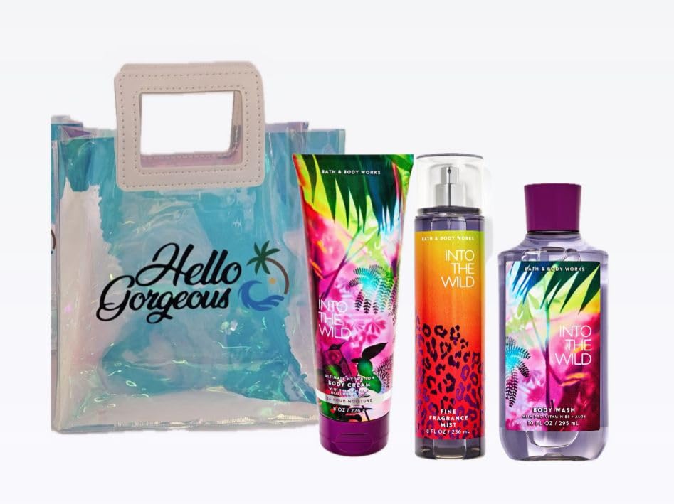 INTO THE WILD - 3 Piece Bundle - White BarnBath Body/Work -Premium Beauty - Full Size and Hello Gorgeous Gift Bag (Packaging May Vary)