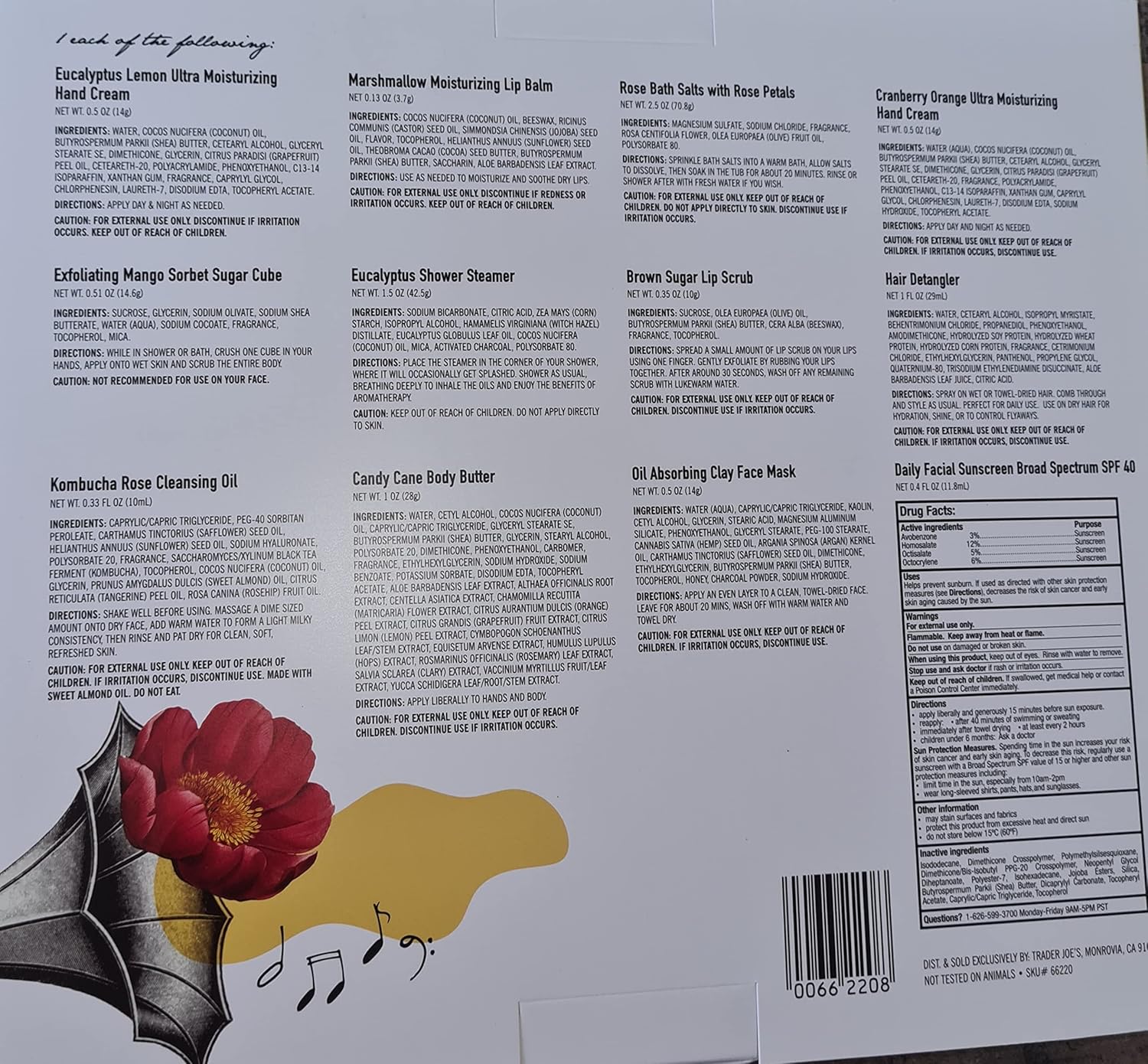 2022 Trader Joe's 12 days Of Beauty Advent Calendar plus 2 Vibrant Glamour Single Face Masks included