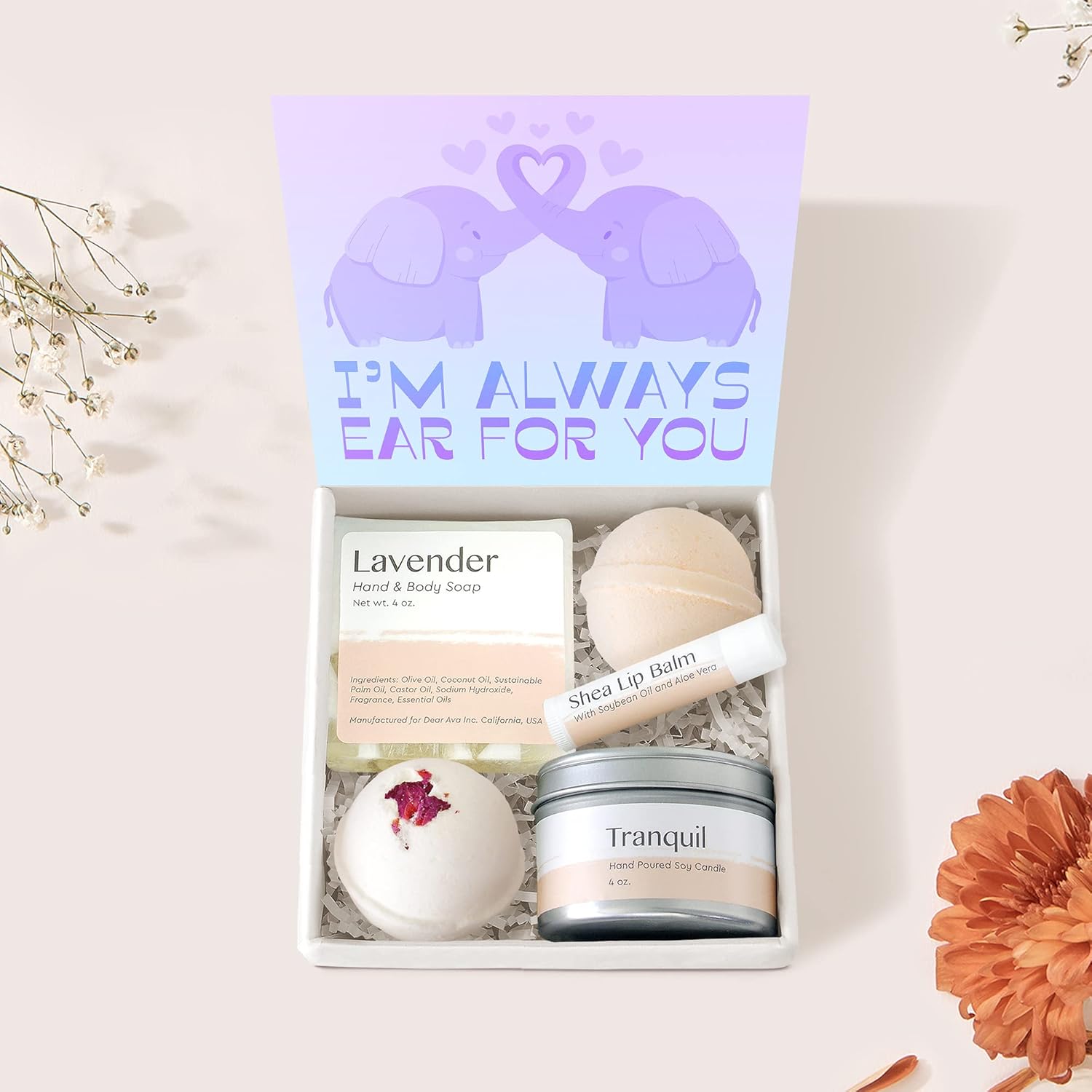 Dear Ava Spa Gifts for Women - Organic Self Care luxury Anti Stress Relaxing Bath and Body Kit Set Basket Box for Her with Heartfelt Card - Funny Motivational Gift