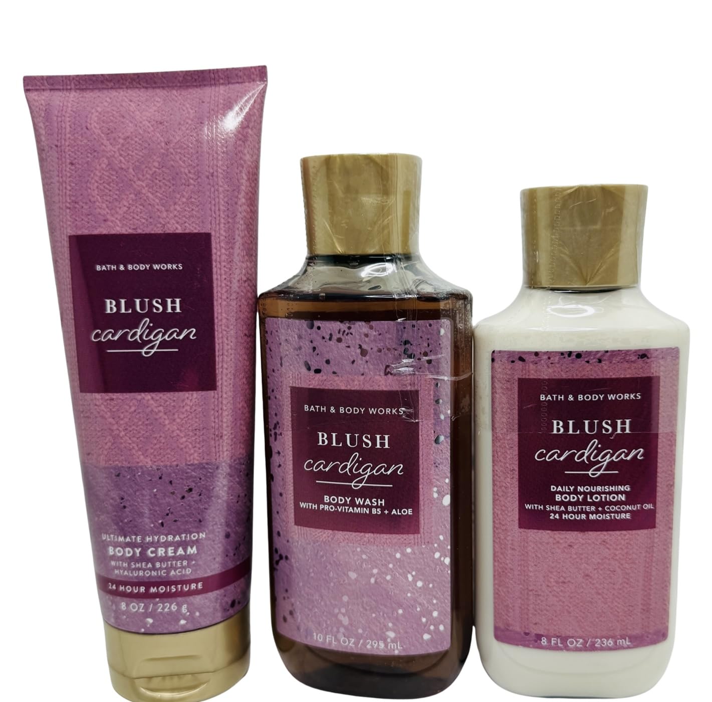 Bath & Body Works Body Blush Cardigan Gel Wash, Body Lotion and Ultimate Hydration Body Cream 3 Piece Set