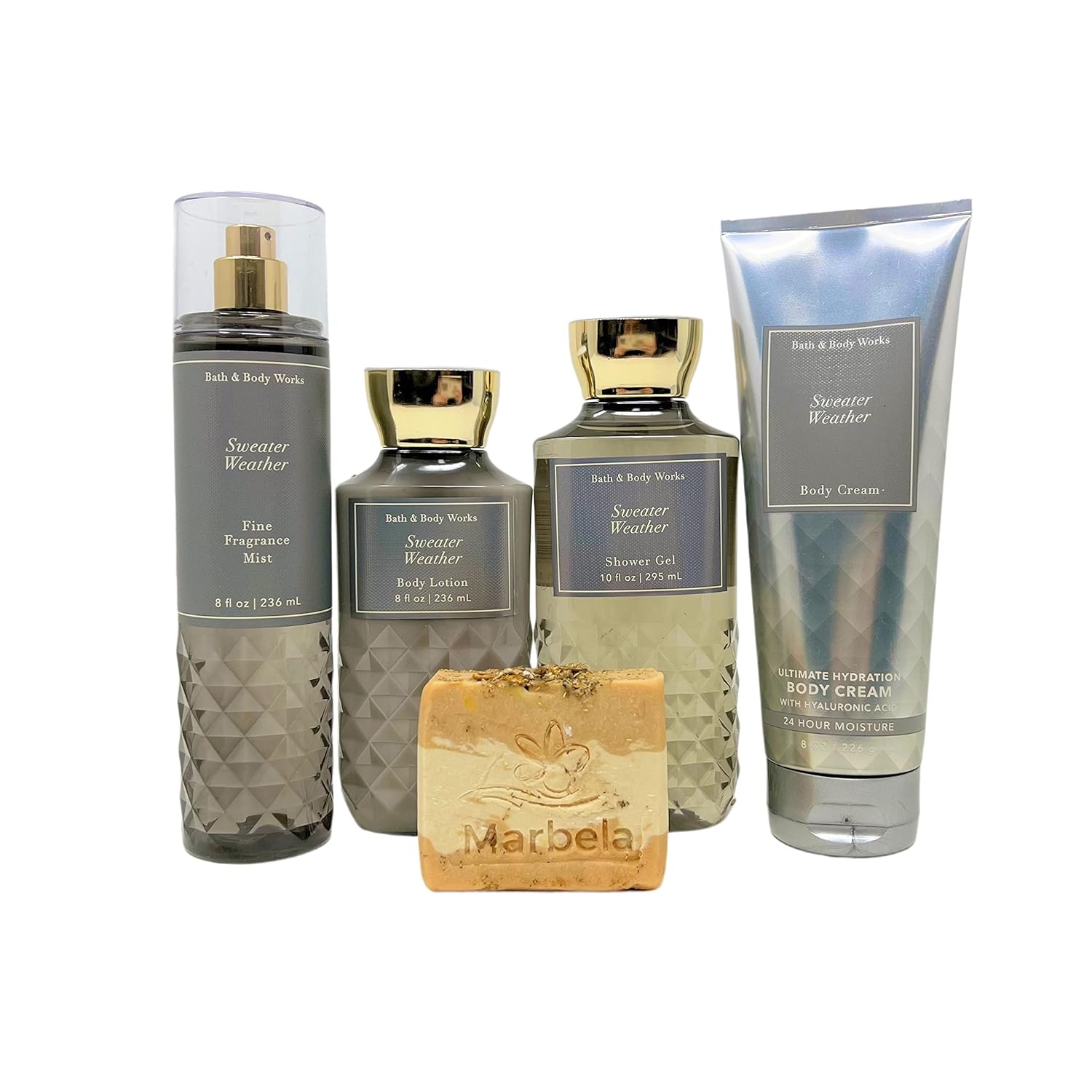 SWEATER WEATHER Deluxe Gift Set - Includes Fine Fragrance Mist, Ultimate Hydration Body Cream, Body Lotion, Shower Gel and a 4 oz Marbela Artisan Bar Soap