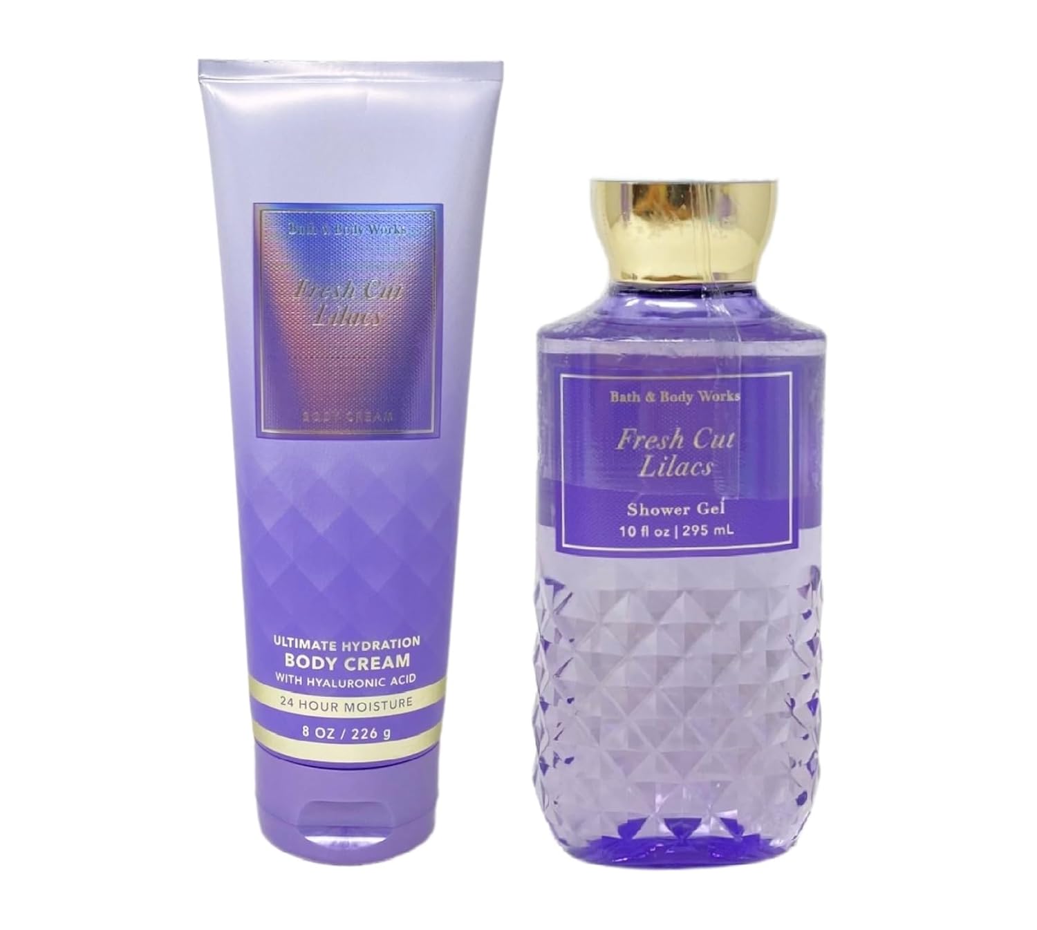 Bath & Body Works Fresh Cut Lilacs 2 Piece Bundle - Body Cream - Shower Gel - Full Size.