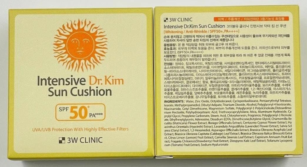 3W Clinic Intensive Dr.Kim Sun Cushion (15g 0.53oz) SPF50+/PA++++ UVA/UVB Protection with Highly Effective Filters, Sunscreen, Suncream