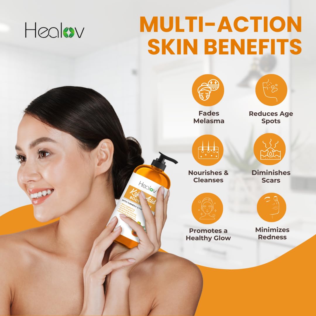 Kojic Acid Soap for Hyperpigmentation – Skin Brightening Kojic Papaya Body Wash – Dark Spot Soap Reduces Acne, Scars, and Evens Tone – Turmeric Body Wash for Brighter Glowing Tone