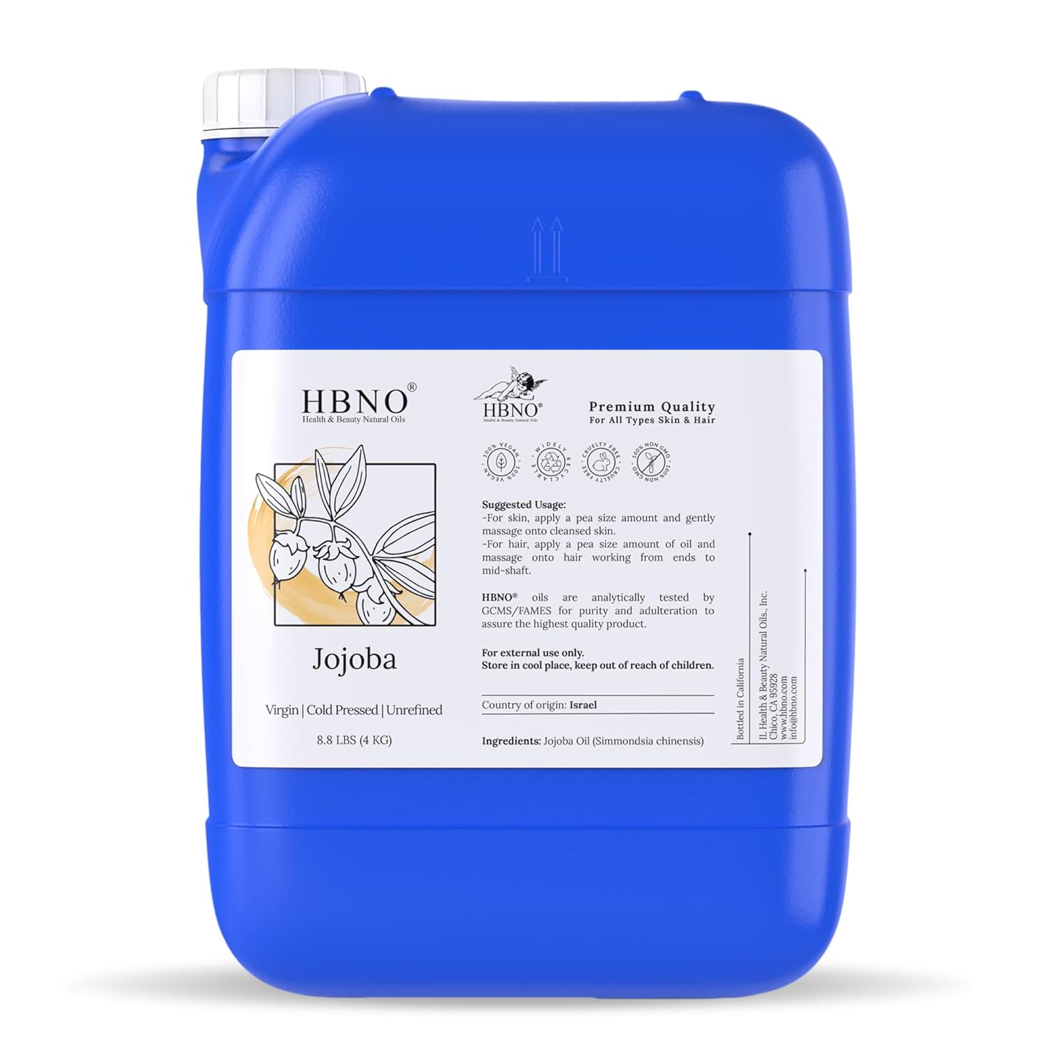 HBNO Jojoba oil - 8.8 lbs (4kg) - Ideal for Shampoos, Conditioners, Massage blends, Face wash, Lotions, and Skin care products.