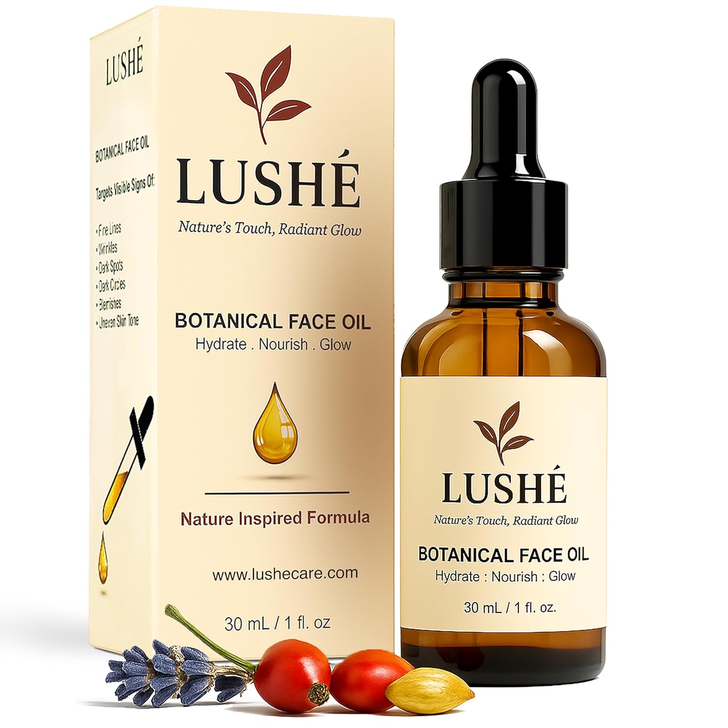 LUSHÉ Botanical Face Oil with Argan Oil, Jojoba Oil, Rosehip Oil & Vitamin E Oil – Natural, Lightweight, Hydrating & Anti-Aging Facial Oil for All Skin Types – 30ml
