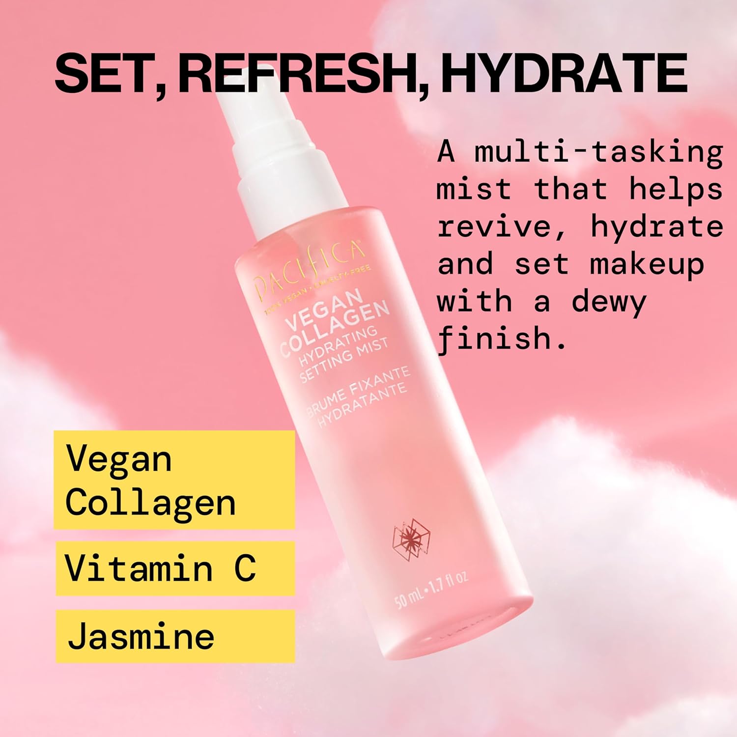 Pacifica Beauty Vegan Collagen Hydrating Setting Mist – Hydrating Illuminating Face Primer for Dewy Skin, w/Vegan Collagen & Squalane for Radiant Glow, Soft-Focus Pore Blurring Makeup Base