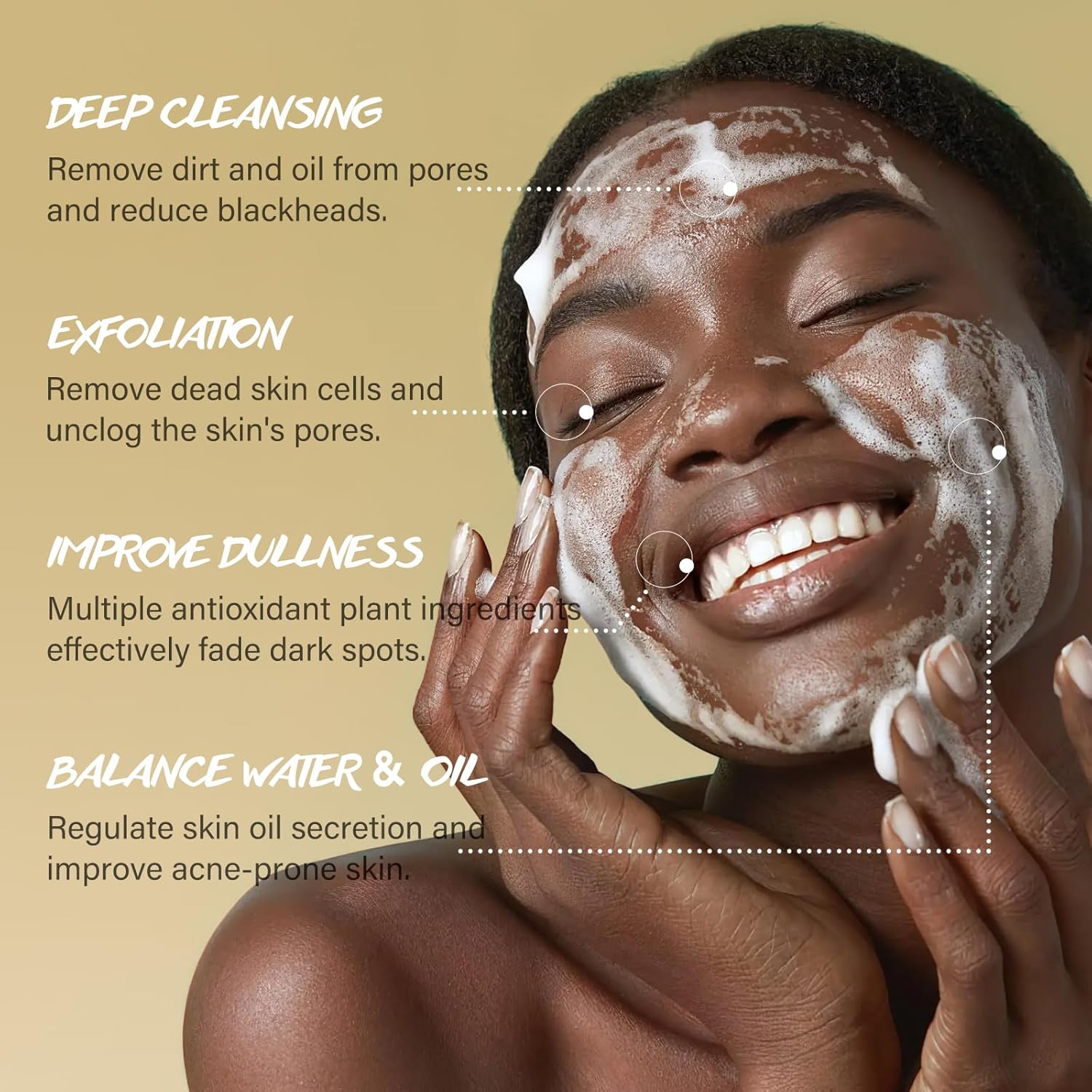 Turmeric Exfoliating Face Wash Vitamin C Facial Cleanser Microdermabrasion Exfoliator Face Scrub Foaming Cleanser Removing Blackhead Acne Moisturizing Soft Natural Skin Care for Women Men