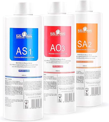BRÜUN Hydrogen Oxygen Facial Machine Serums for Facial Cleansing – A Pack of 400ml 3 Aqua Peeling Solution AS1, SA2, and AO3 –Skin Care Hydra Solution for Vacuum face Cleaning Jet for Home and Spa