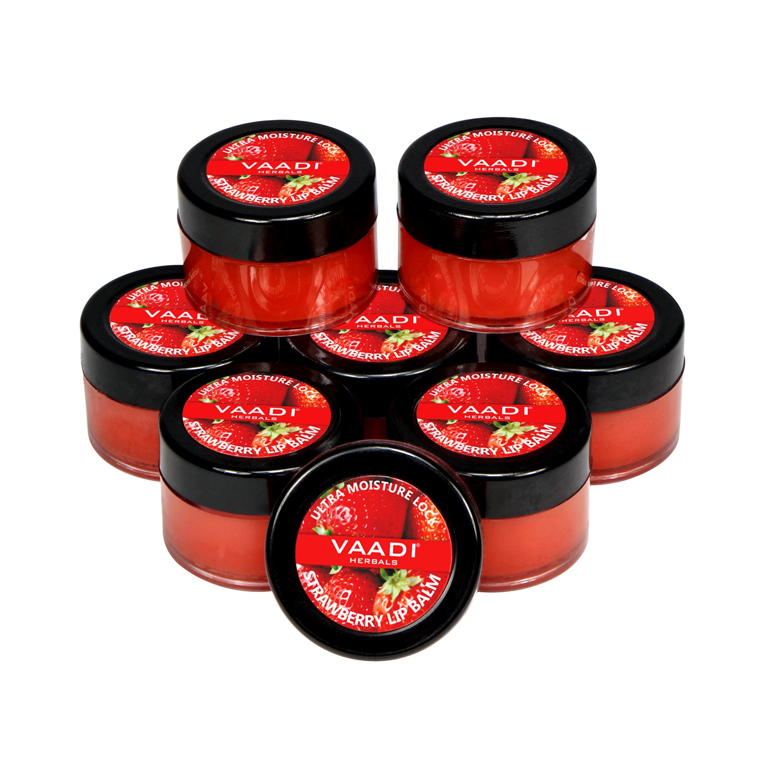 Lip Balm - ★ Ultra Moisturizer Lock - ★ Strawberry & Honey Flavor - ★ All Natural - ★ Pack of 8 X 10 Gms(0.35 Ounces) in Tin - Vaadi Herbals