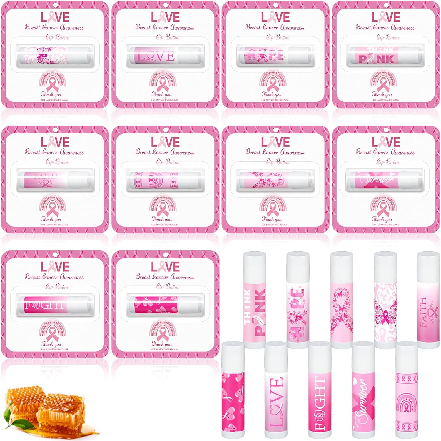 10 Pack Breast Cancer Awareness Lip Balms Bulk Small Pink Ribbon Thank You Lip Balms Gifts Set Breast Cancer Awareness Bulk Items Moisturizing Care Survivors Gifts for Women Men Survivors