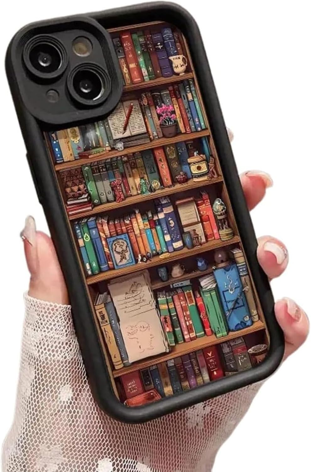 Alyova Bookshelf Phone Case, Alyova Book Phone Case, Shockproof TPU Protective Shell, Personalized Book Creative Design for iPhone 16 15 14 13 12 11 Pro Max (Red,12promax)