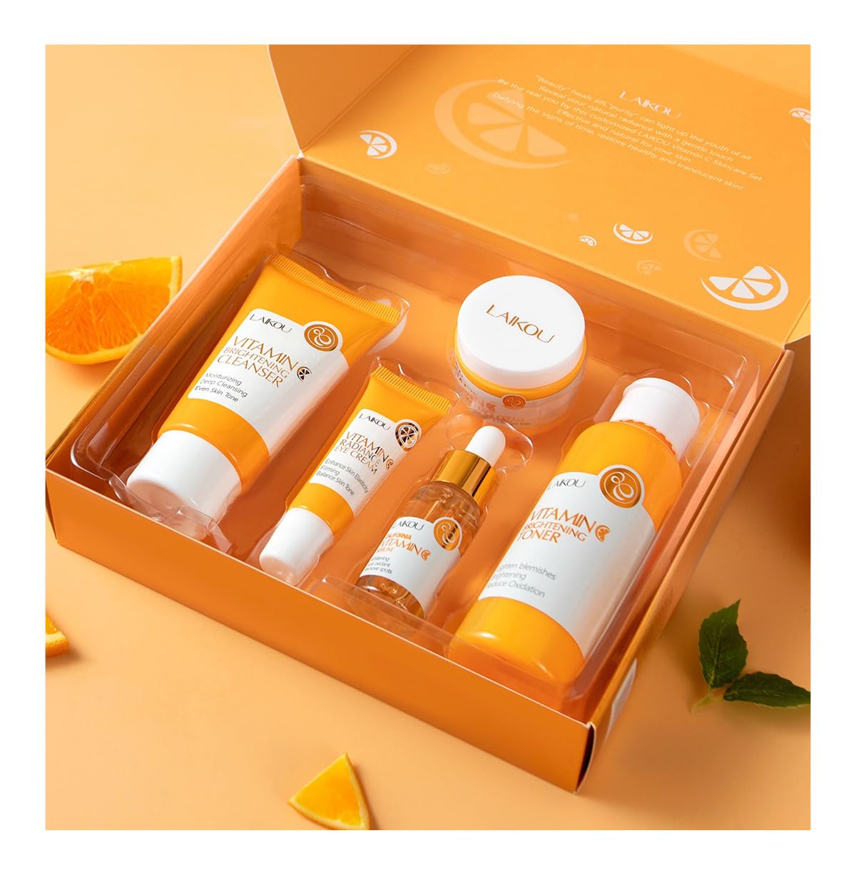 1 Pack Vitamin C Skincare Set, Containing Facial Cleanser + Toner + Serum + Eye Cream+ Essence Cream, Skincare Pack, Moisturizing Skin, Even Skin Tone