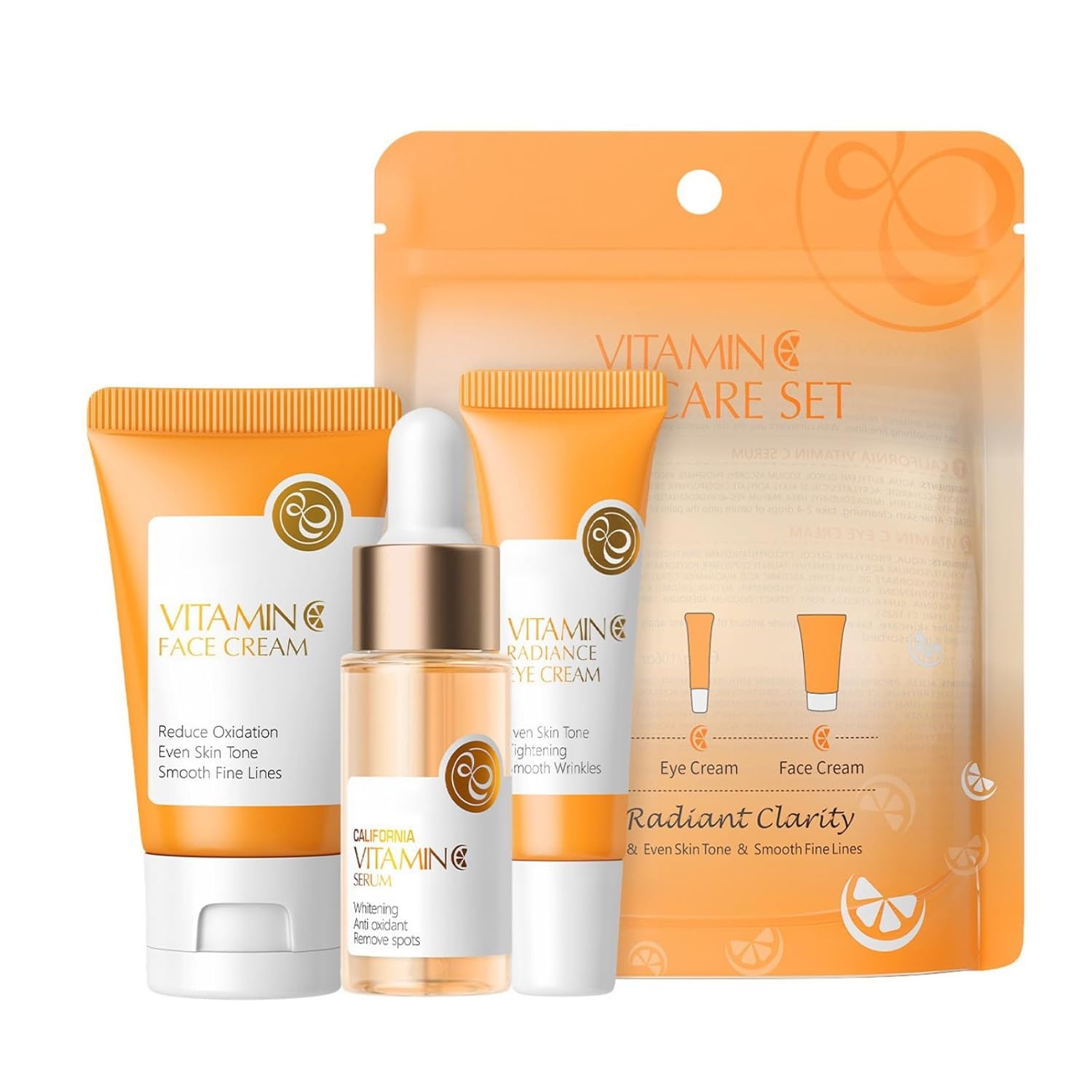 Skin Care Set Vitamin C Beauty Gift Sets,3Pcs Skin Care Kit with Serum, Eye Cream, Face Cream Travel Kit for Women Mom Wife Sister Daughter Teen Girls Birthday Gift