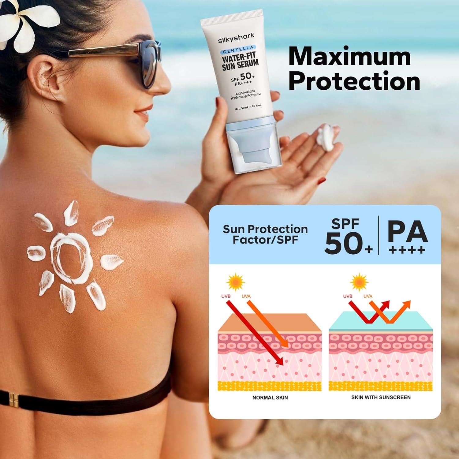 Centella Sunscreen SPF 50+ PA++++, Centella Asiatica Serum Sunscreen, Oil-Free, Non-Greasy, Long-Lasting UVA/UVB Protection, for Sensitive & Acne-Prone Skin, 1.69 Fl Oz