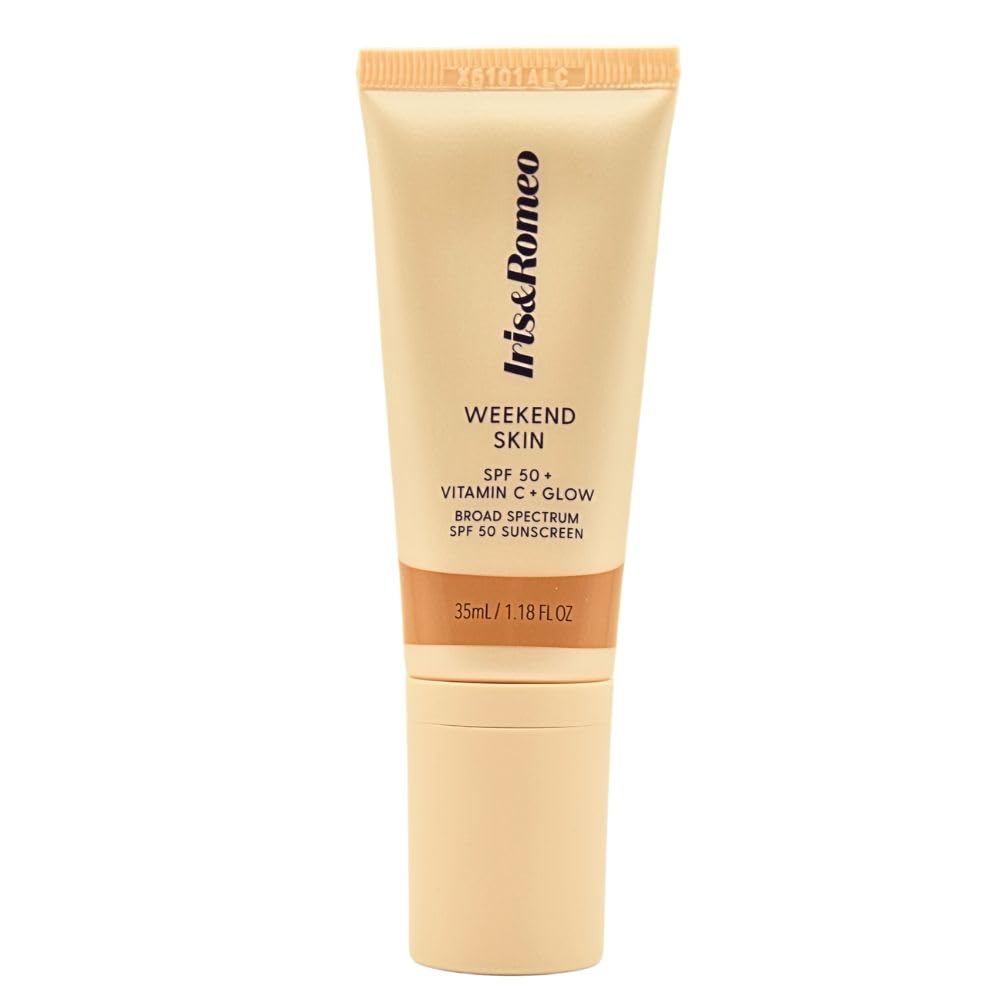 IRIS&ROMEO Weekend Skin SPF 50 – Warm Glow, Mineral Sunscreen with Vitamin C & Niacinamide for Dewy Golden Finish, 1.18 fl oz