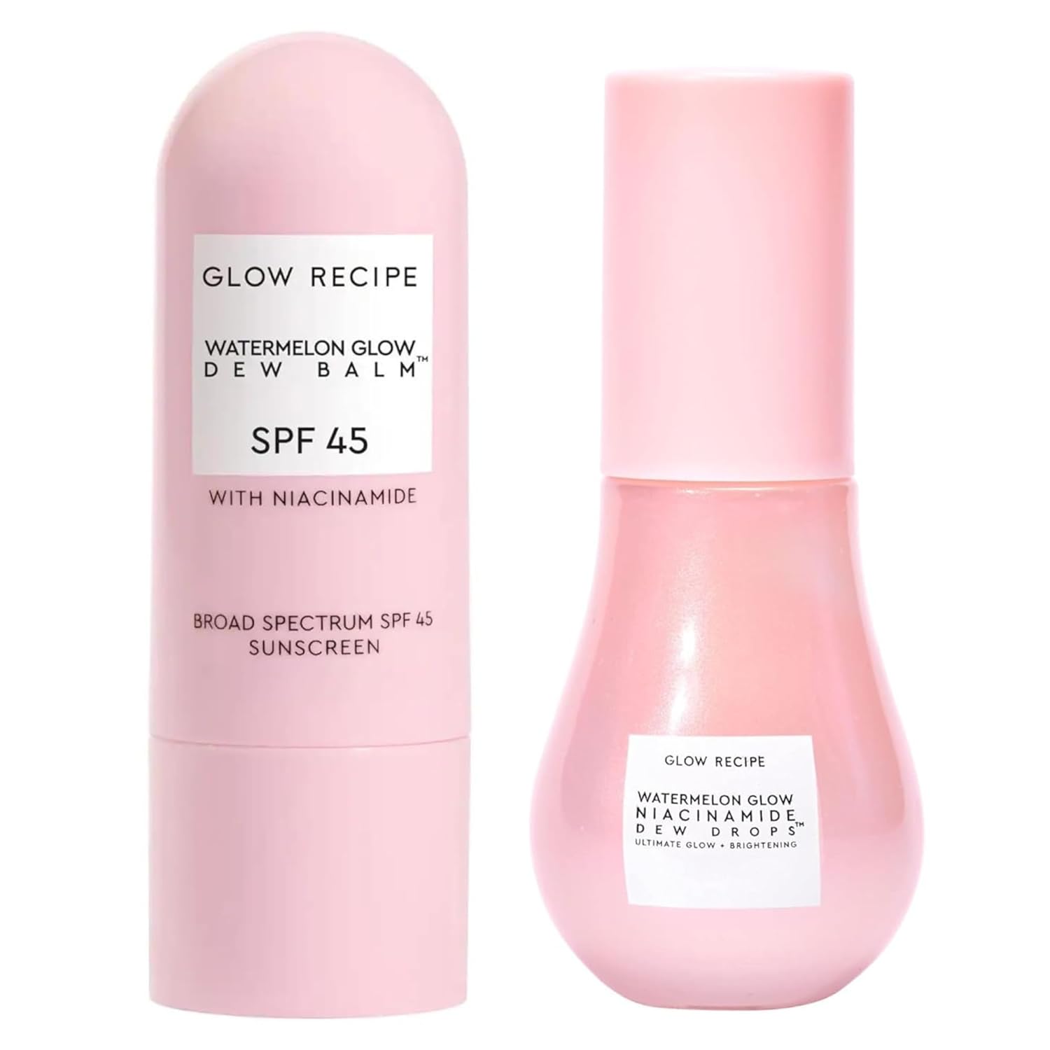Glow Recipe Skincare Essentials Travel Duo - Watermelon Glow SPF Dew Balm Sunscreen (.58oz) + Niacinamide Dew Drops Serum with Hyaluronic Acid (15ml) - Protect from UVA Rays & Brighten Uneven Skin