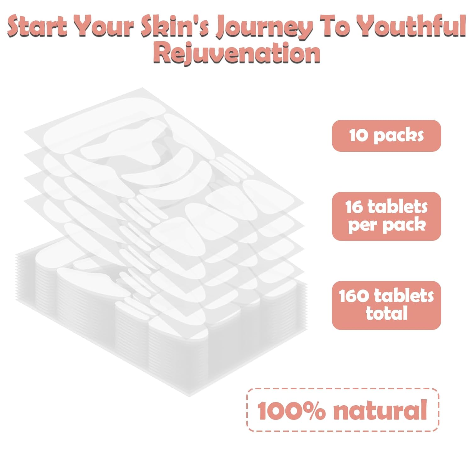 Complete Face Facial Patches Set: You will receive 160 wrinkle patches in a variety of shapes and sizes to target forehead, eyes, cheeks, mouth, and chin. The versatile set designed to smooth different areas of the face with ease