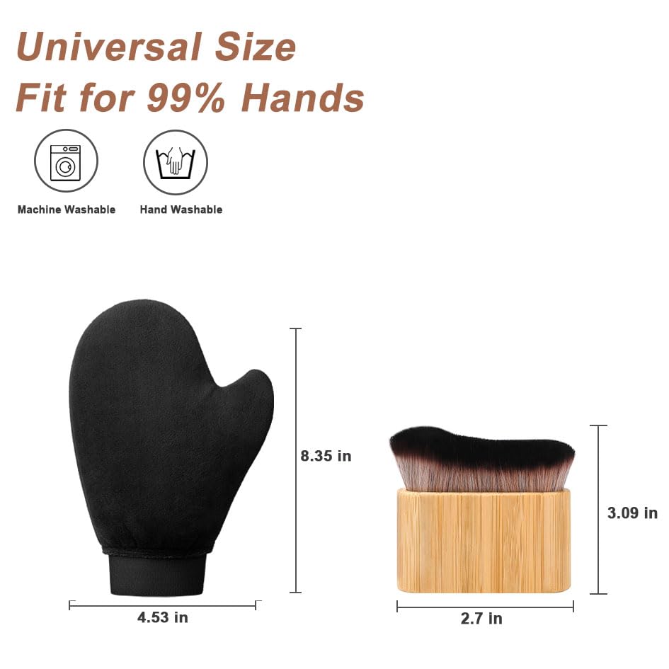 2 in 1 self tanning mitt applicator kit for Flawless Application: Our self tanning mitt set 2 includes 1 black self tanner mitt applicator and 1 large self tanner brush, offering a complete solution for effortless and even tanning. The self tanning gloves for self tan lotion is perfect for covering large areas like arms, legs, and torso, while the self tanning brush is ideal for detailed application on the face, hands. This combination ensures a streak-free, natural-looking tan every time