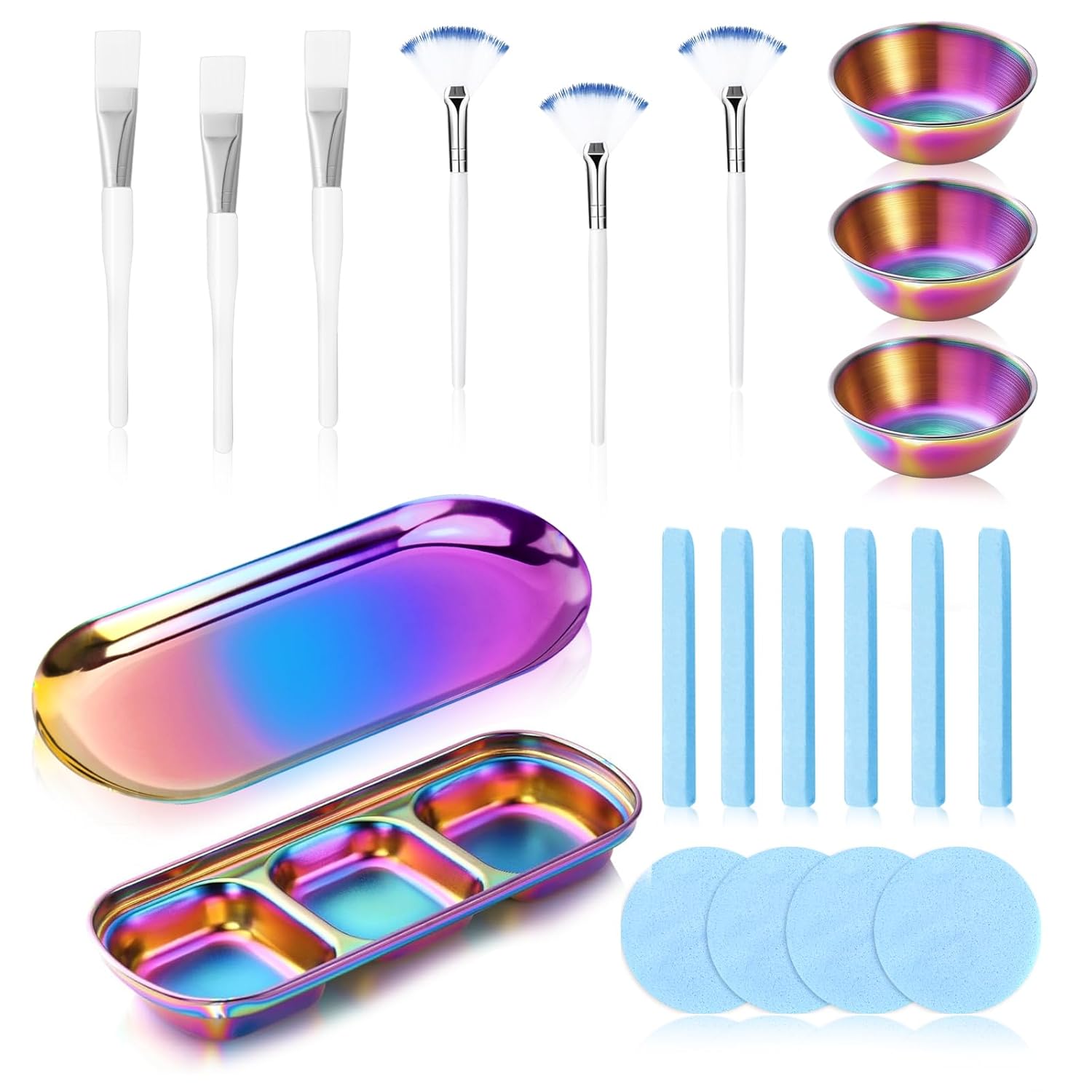 Comment on "23 Pcs Rose Gold Esthetician Supplies 3 Stainless Steel Facial Mask Mixing Bowls 3 Facial Fan Brushes 3 Flat Brushs Skincare Tray 3-Compartment Serving Tray 12 Compressed Facial Sponges for Skin Care(Gold)"