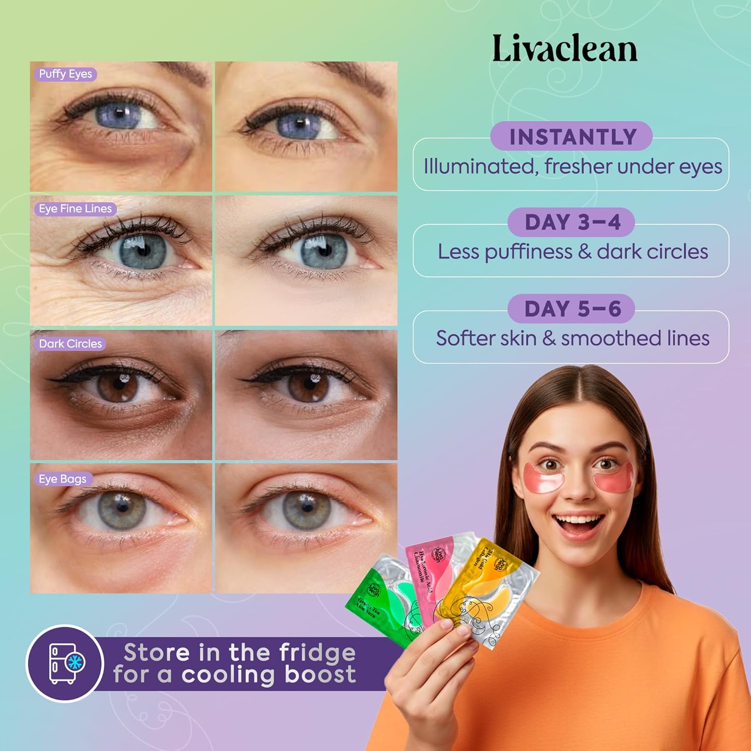 Instant De-Puffing & Reviving: Our eye patches for puffy eyes and dark circles reduce puffiness and refresh tired eyes instantly. Many users see a visible difference after just one use, making them a must-have for your morning routine!