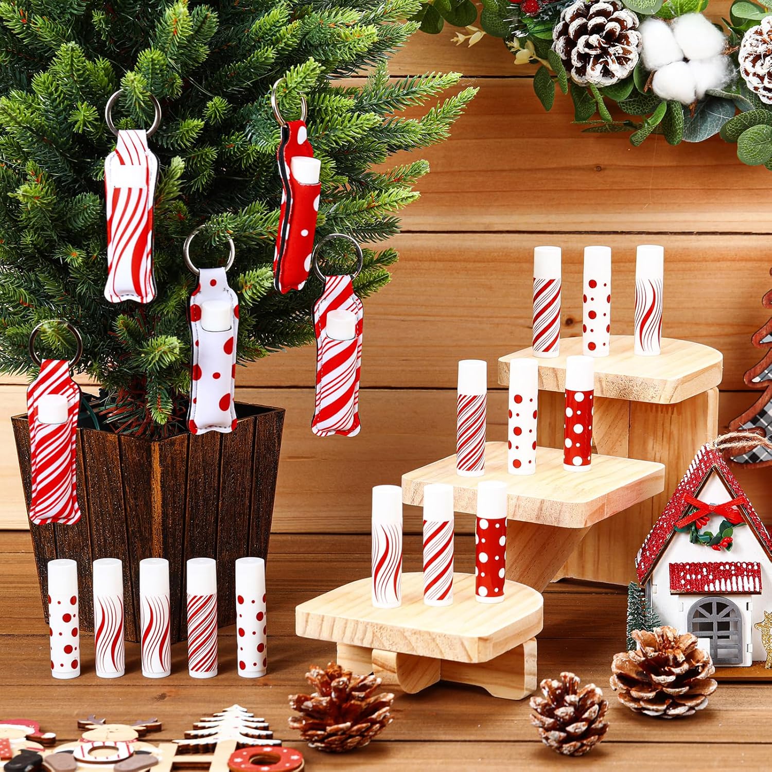 Christmas Gifts Bulk: this Christmas Lip Balms and Lipstick Holder set inspired by Christmas elements, contains 25 individually candy themed lip balms and 25 lipstick holder keychain, it is not only a practical lipstick, but also a Christmas decoration These peppermint candy scented flavor christmas gifts add atmosphere to your theme party and promote friendship among friends