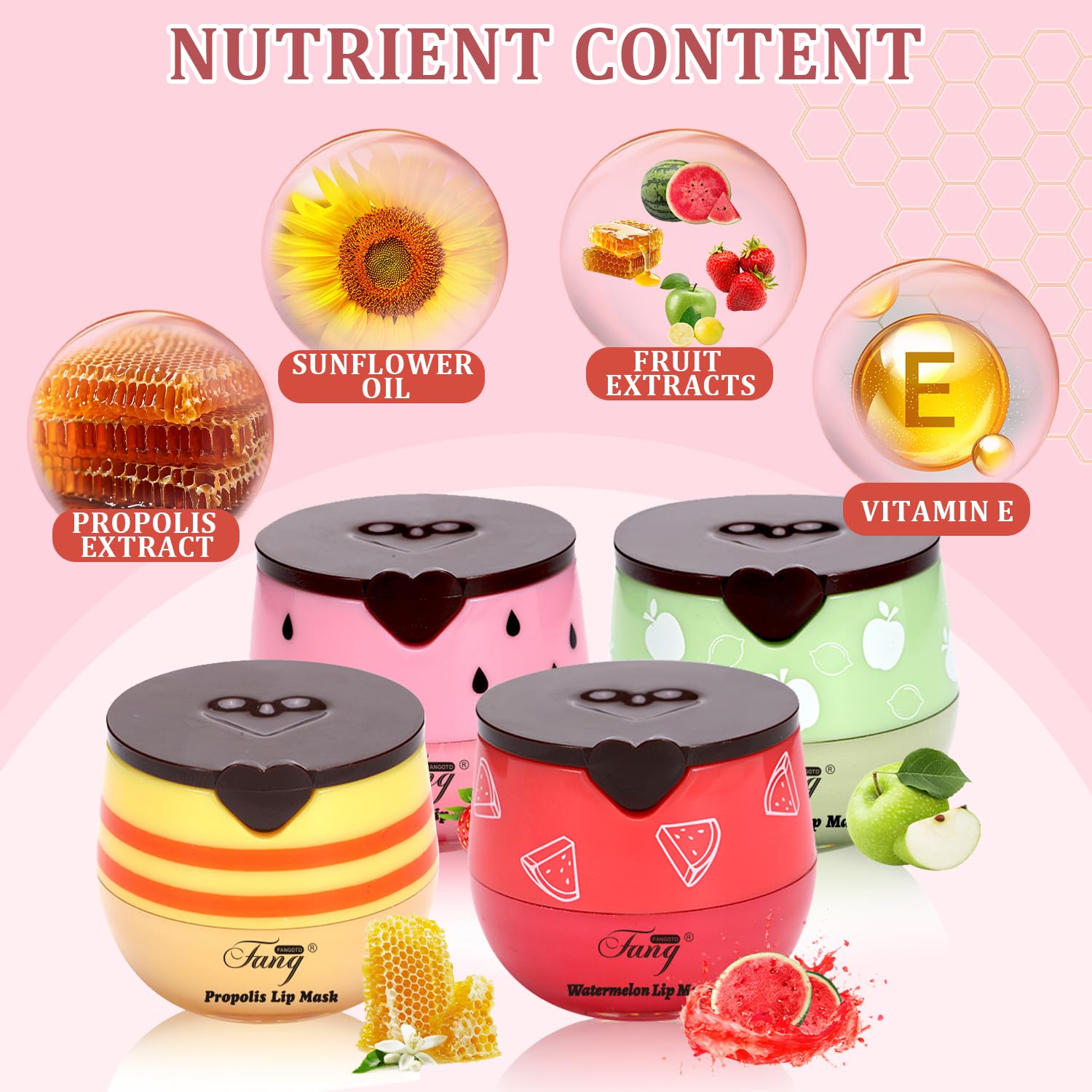 HYDRATING INGREDIENTS:The lightweight lip mask is rich in sodium hyaluronate, glycerin, squalane, honey, strawberry extract, watermelon extract, vitamin E and other ingredients, powerful moisturiz the lips