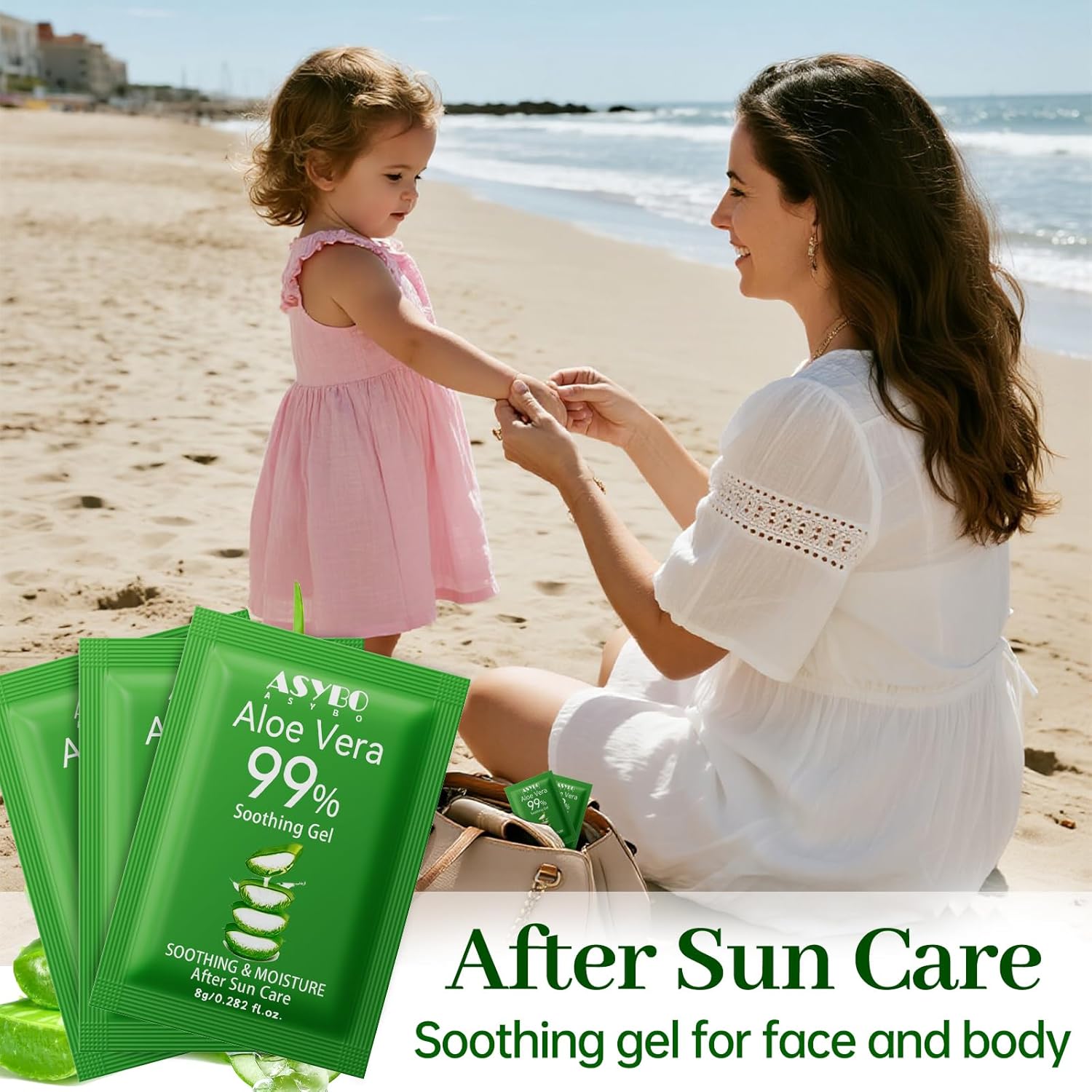 PORTABLE TRAVEL SIZE: This set of aloe vera gel contains 30 packs, each pack of aloe vera gel is 0.282 ounces, individually wrapped, small and portable, can be placed in your pocket, backpack, wallet, and car, perfect for the outdoors, travel, and vacation, take care of your skin and hair anytime, anywhere