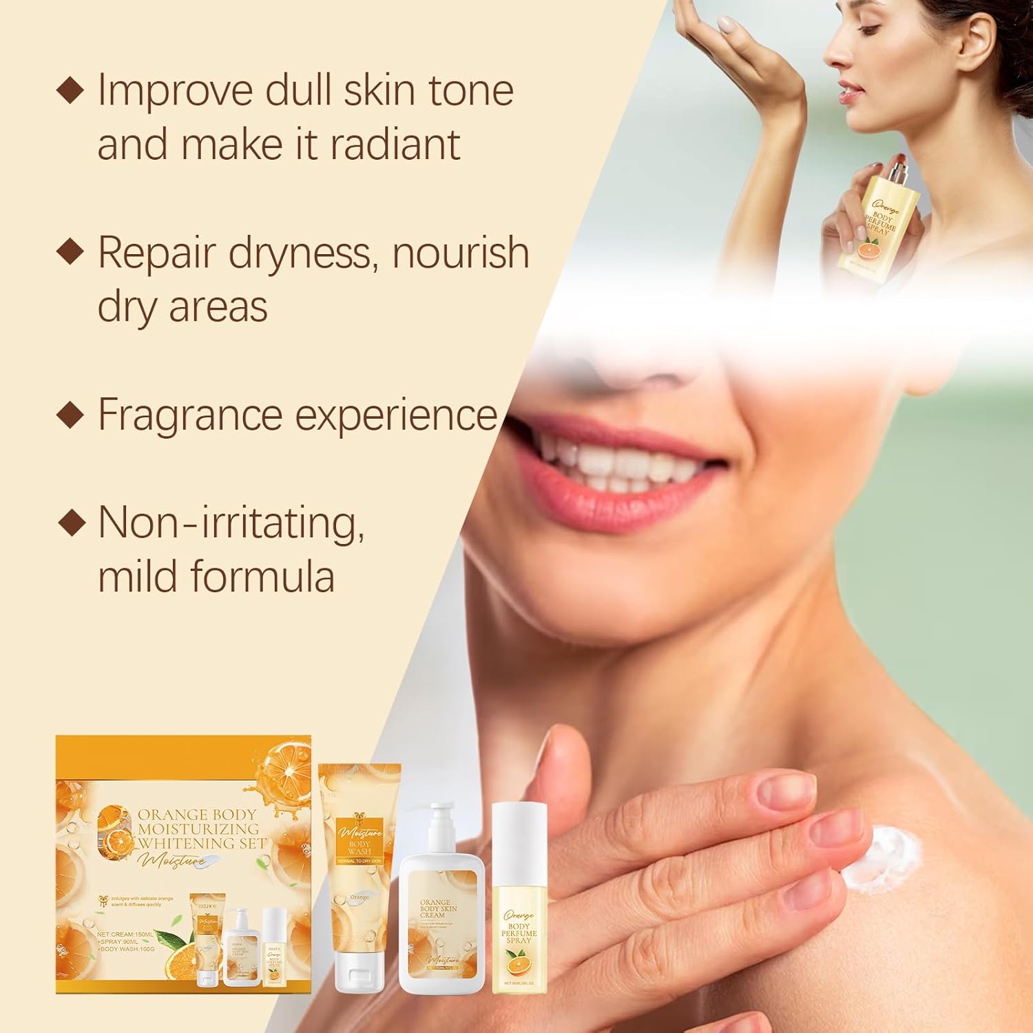 3pcs Orange Scented Skincare Set Body Cleanser Hydrating Lotion and Perfume for Daily Use Men and Women(Orange,One Size)