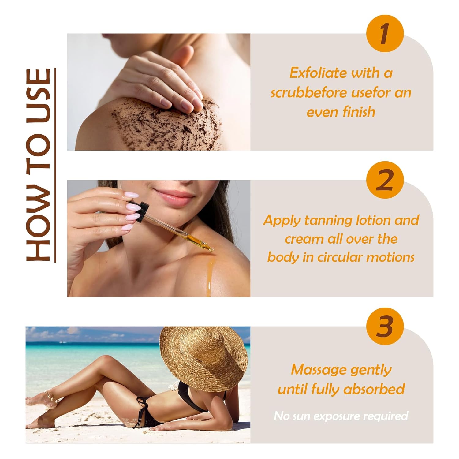 3PCS Self Tanner Set with Tanning Bed Lotion Accelerator,Bronzing Tanning Lotion and Hydrating Sun Tan Drops,Moisturizing Indoor Suntan Cream with Bronzer,Self Tanner Cream for Women Men