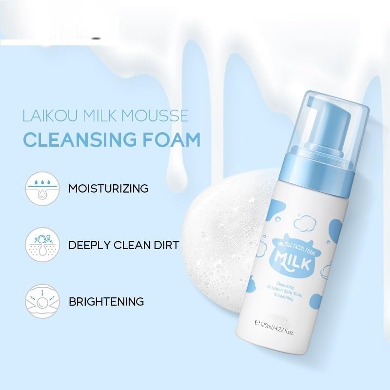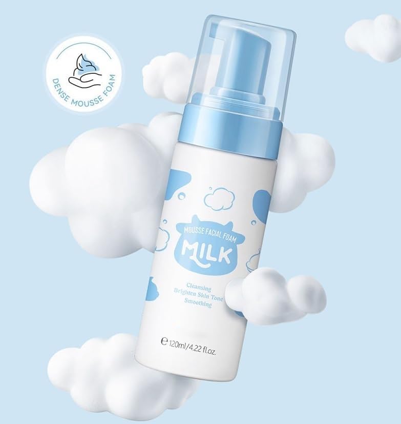 [Milk Face Care Set for Women 5PCS] - This teen skin care kit for women will provide you with everything you need for your skin care: travel cleanser mousse, serum, lotion, cream, which help to shrink pores, balance facial oil secretion.