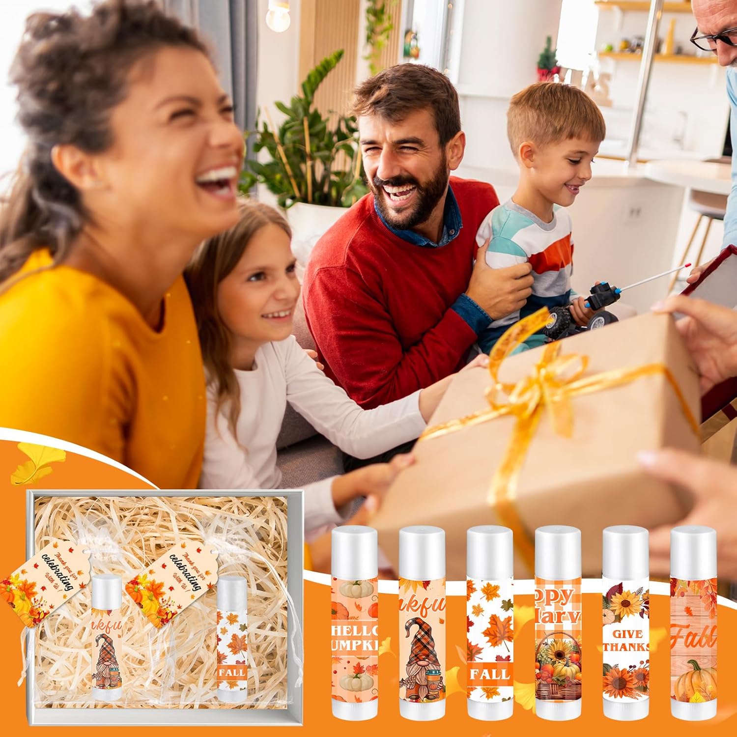 Bulk Fall Lip Balms: You will receive 50 moisturizing lip balms printed with six autumn-themed patterns and containing six refreshing flavors: honey, vanilla, mint, rose, strawberry, and jasmine. These lip balms help moisturize dry, chapped lips and come with 50 organza bags and 50 fall greeting cards, which you can share with your friends, colleagues, or family.