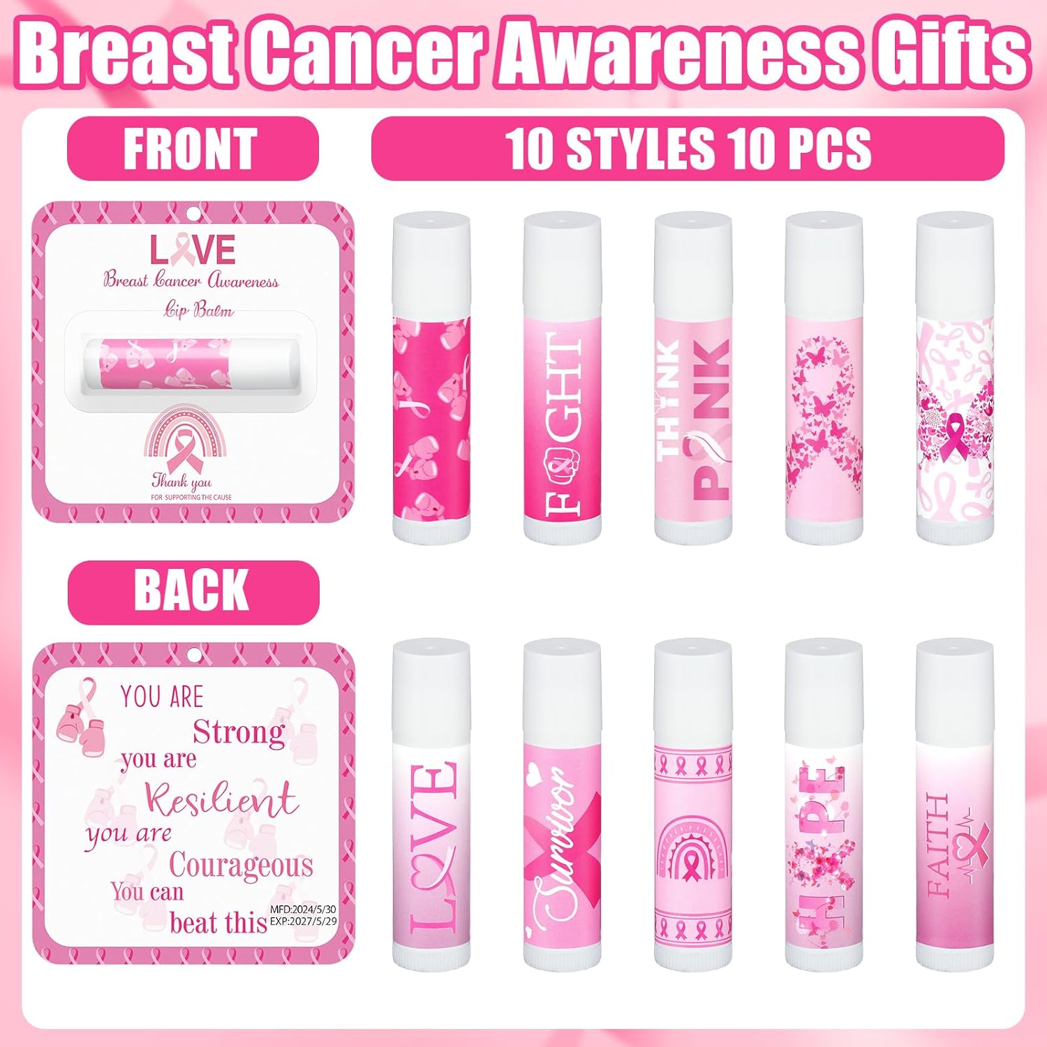 10 Pack Breast Cancer Awareness Lip Balms Bulk Small Pink Ribbon Thank You Lip Balms Gifts Set Breast Cancer Awareness Bulk Items Moisturizing Care Survivors Gifts for Women Men Survivors(10)
