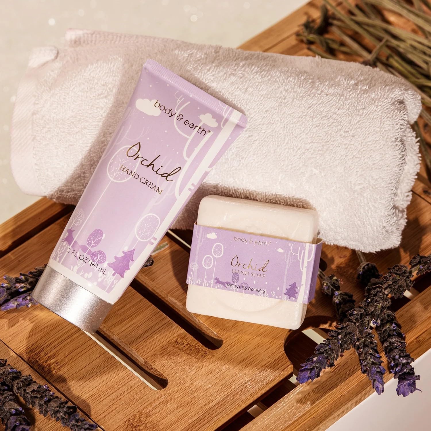 Spa Gift Sets for Women - 5 Pcs Orchid Scent Bath and Body Christmas Kits Holiday Birthday Gifts Box for Her Relaxing
