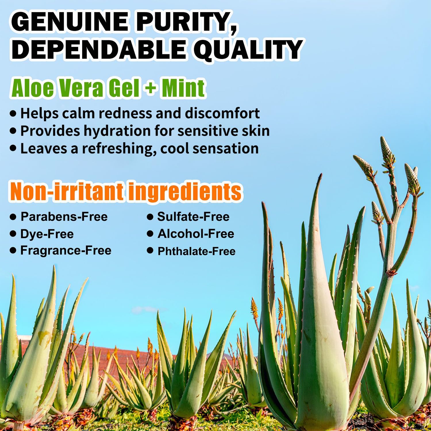 Genuine Purity, Trusted Quality: Our aloe vera gel is derived from carefully selected aloe plants and rigorously processed to deliver high purity and efficacy. Free from parabens, artificial fragrances, and common irritants, it is formulated to be gentle on sensitive, oily, dry, or combination skin. Infused with mint extract for a refreshing, cooling sensation.