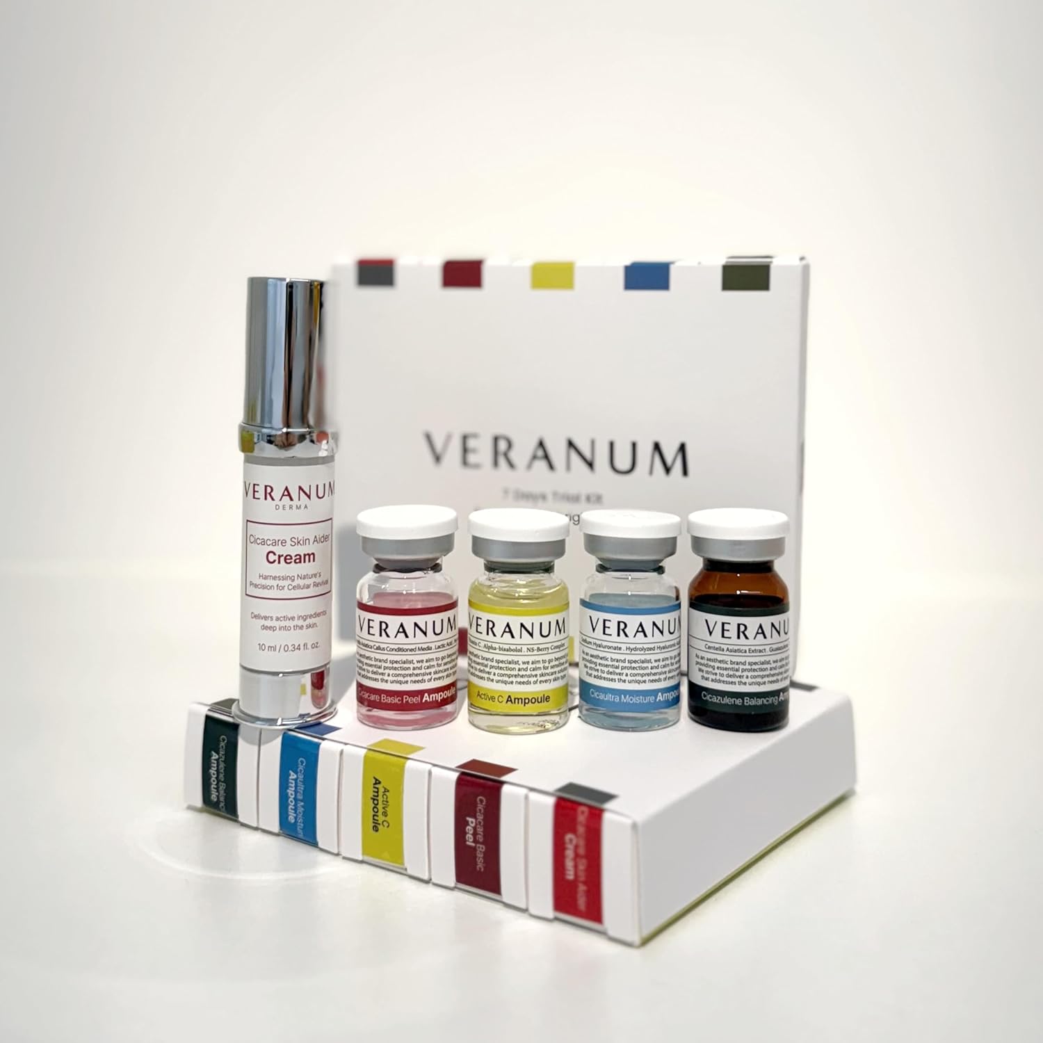 Complete 7-Day Glow Trial Kit Bundle – 5 Items – Includes 4 targeted ampoules (0.24 fl oz each) + 1 Aider Cream (0.34 fl oz) packaged together in travel-size sample formats.