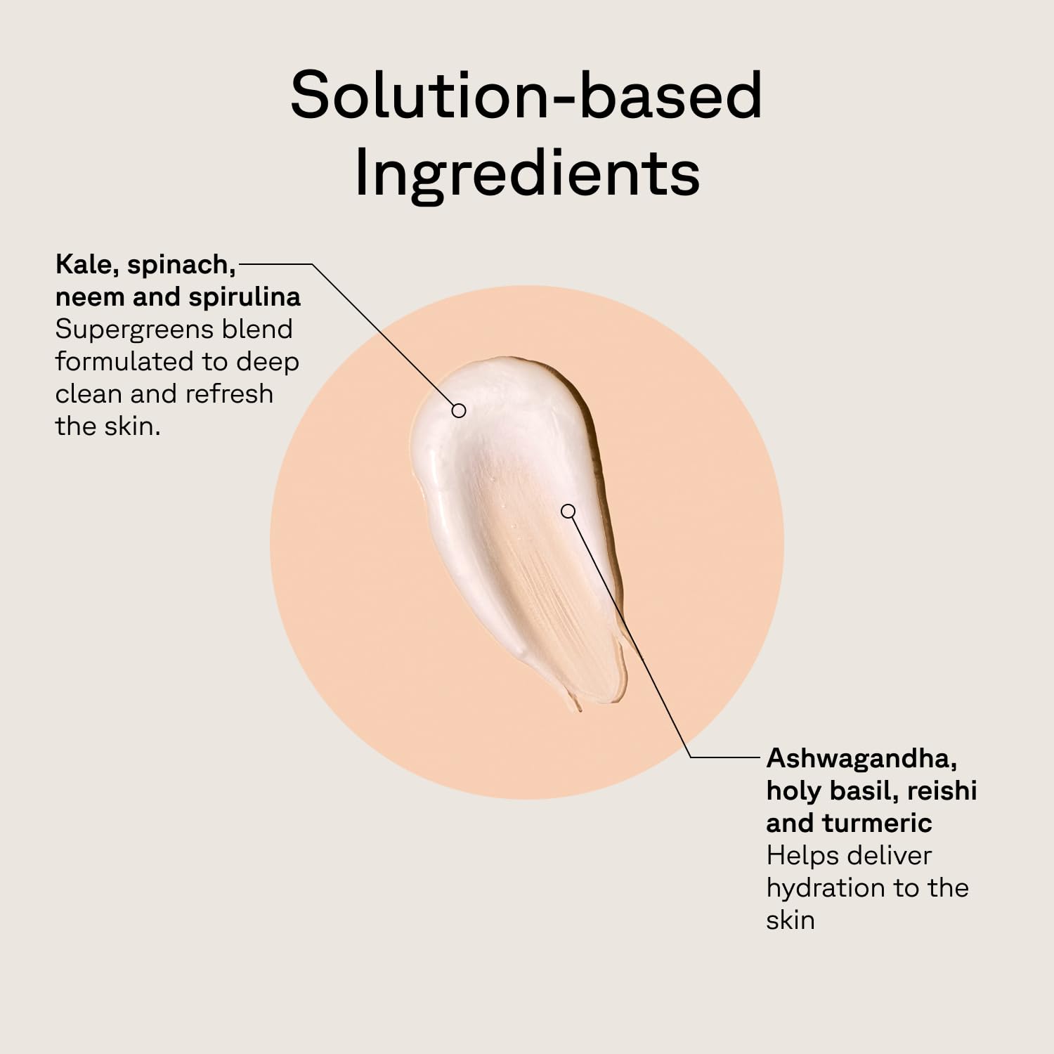 SUPERGREENS & ADAPTOGENS - Our green face wash combines kale, spinach, neem, spirulina, holy basil, reishi, and ashwagandha for a superfood boost that purifies, hydrates, and rejuvenates skin daily
