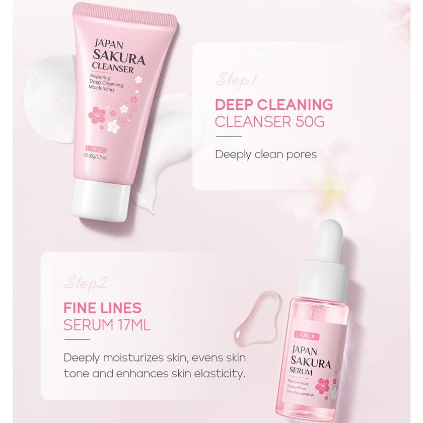 The facial cleanser helps to deeply clean skin. The facial serum helps to refine skin, the eye cream helps to relieve dark circle and fine lines around eyes.