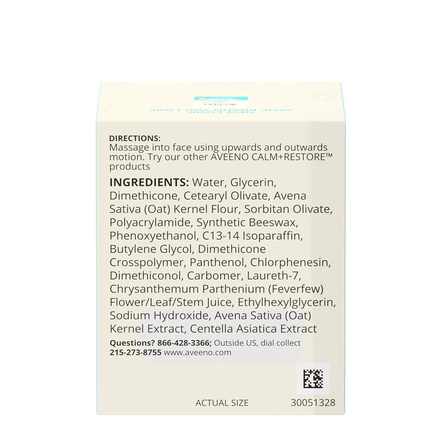 1.7-ounce container of Aveeno Calm + Restore Fragrance-Free Oat Gel Facial Moisturizer for sensitive skin with Prebiotic Oat & calming feverfew, to instantly sooth & replenish skin's moisture barrier