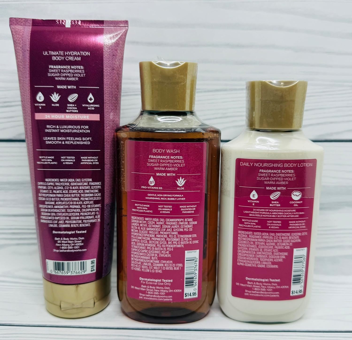 • Set Includes: Lotion 8 ounce, Body Wash 10 ounce, Body Cream 8 Ounce