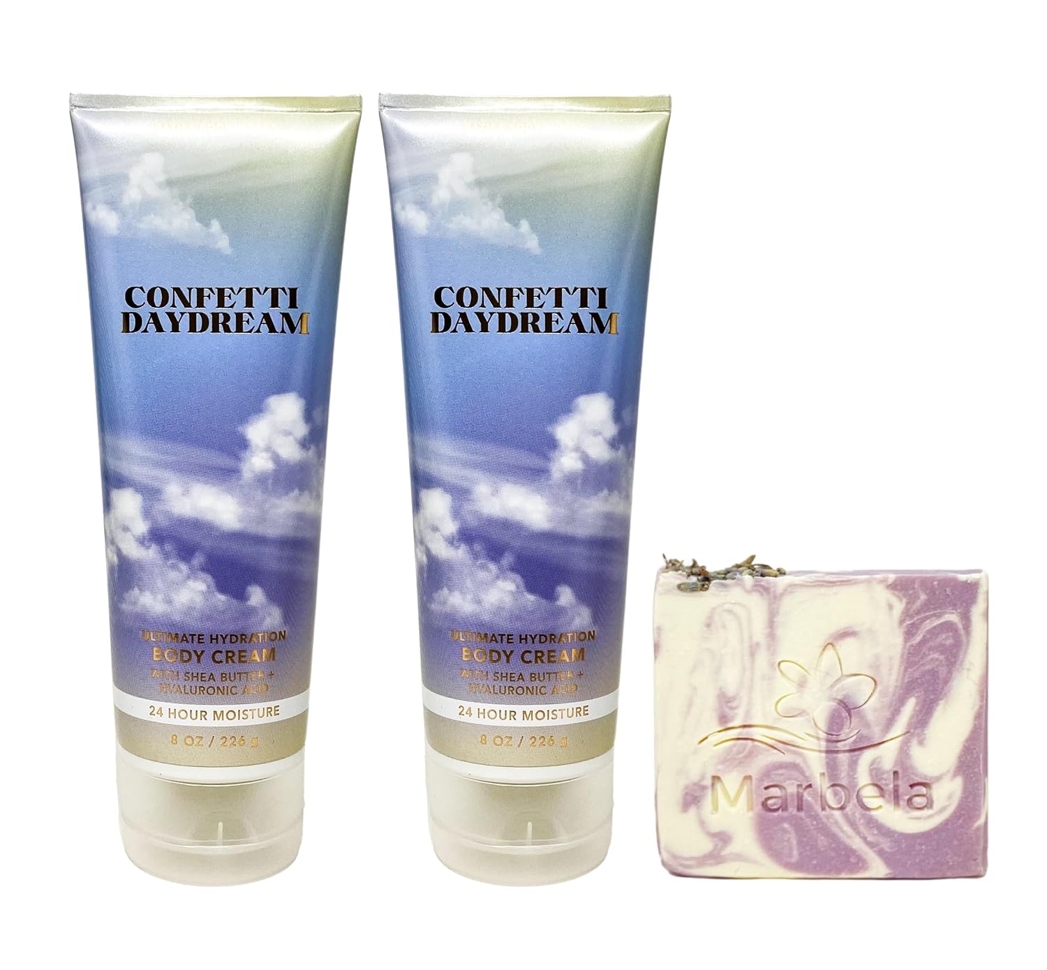 Bath & Body Works Confetti Daydream Ultimate Hydration Body Cream Bundle with a Marbela Lavender Dream Bar Soap