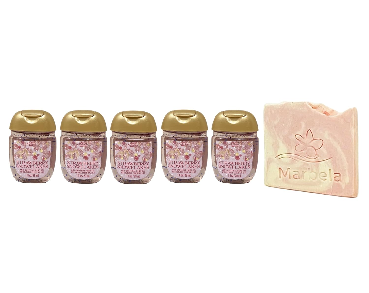 Bath & Body Works Strawberry Snowflakes Hand Gel Bundle with a Marbela Himalayan Salts Springs Sample Soap
