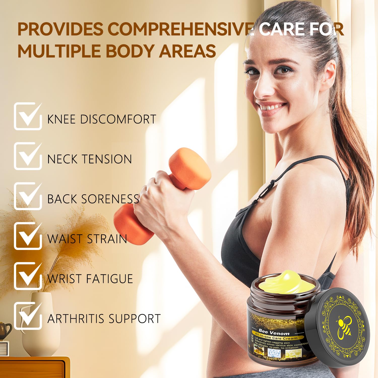 【Compact and Portable, Light and Invisible】The bee venom cream comes in a small, elegant package. Its gel texture instantly melts upon application. It can be carried in a sports bag or commuter bag and is quickly absorbed without leaving a sticky residue.