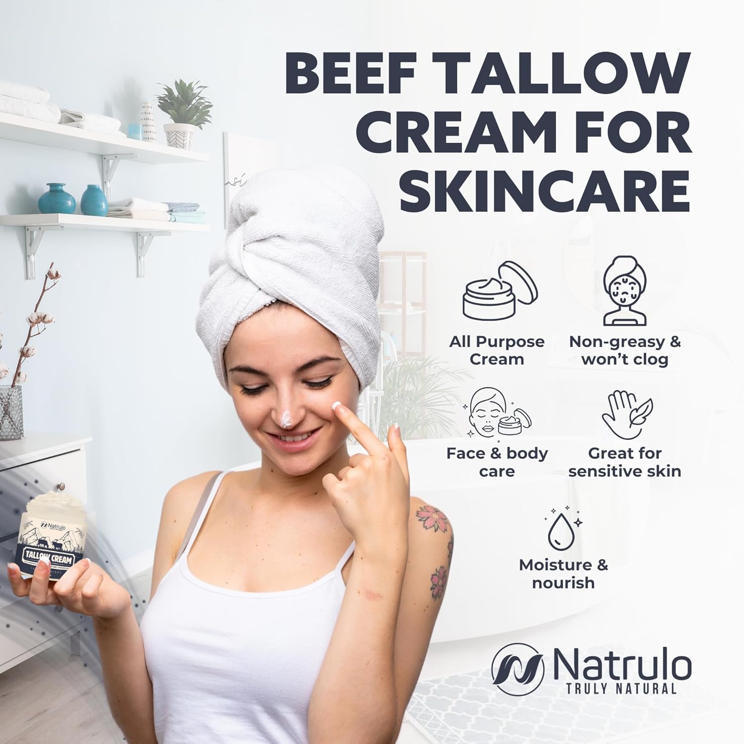 PURE BISON TALLOW CREAM FOR DRY SKIN: A versatile body cream formulated with bison tallow for skin to provide essential care and hydration, leaving your skin refreshed and revitalized.