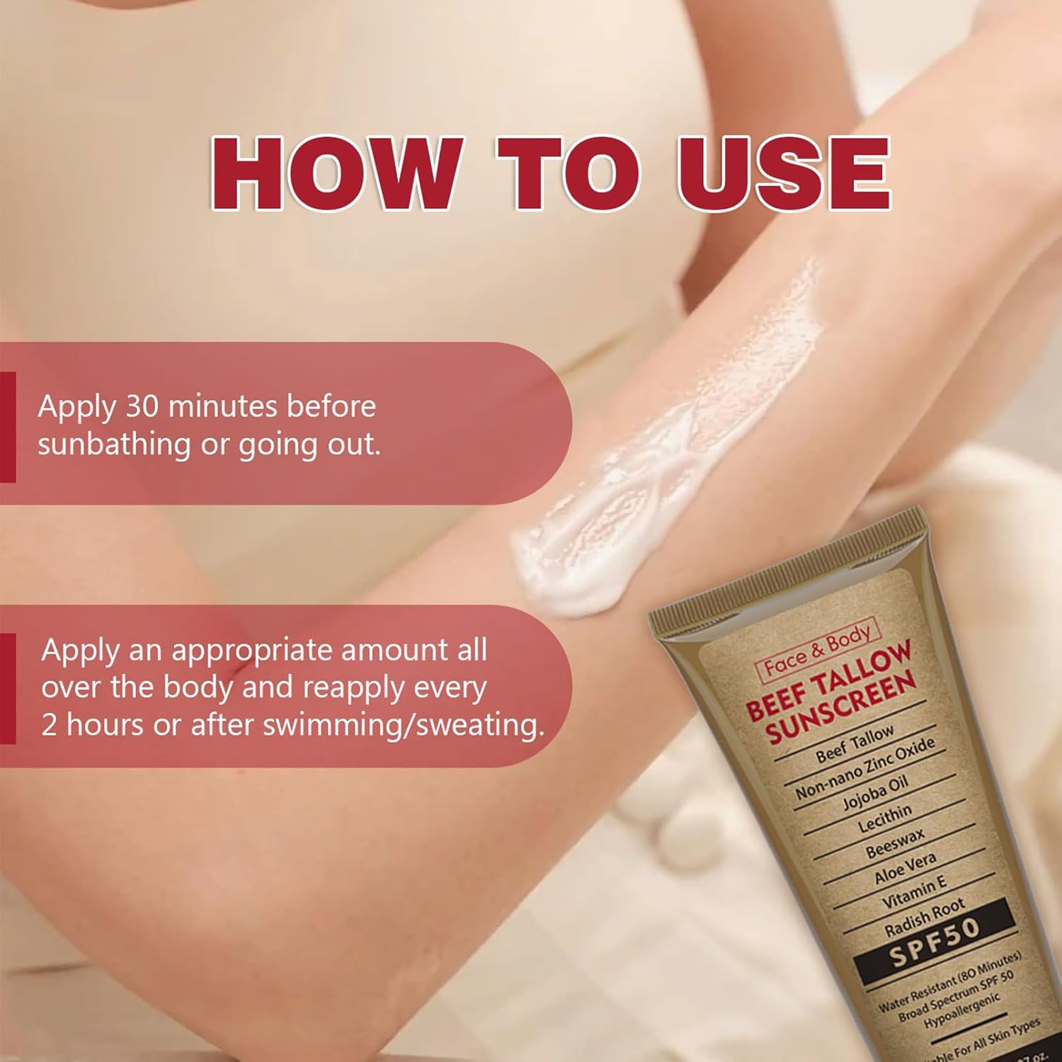Comment on "Beef Tallow Sunscreen for Face & Body, Natural Organic Sunscreen SPF 50, Beef Tallow for Skin Non Greasy, No White Cast, Fast Absorbing, Deep Moisturizing for Sensitive Skin, Summer Outdoor, 3.52 OZ"